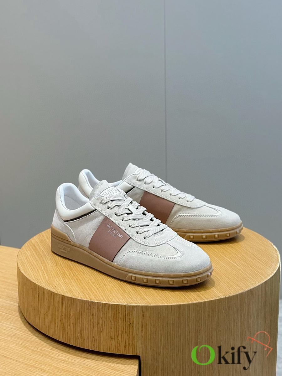 Okify Women's Screener Trainer Pink GG Canvas Beige Leather Trim