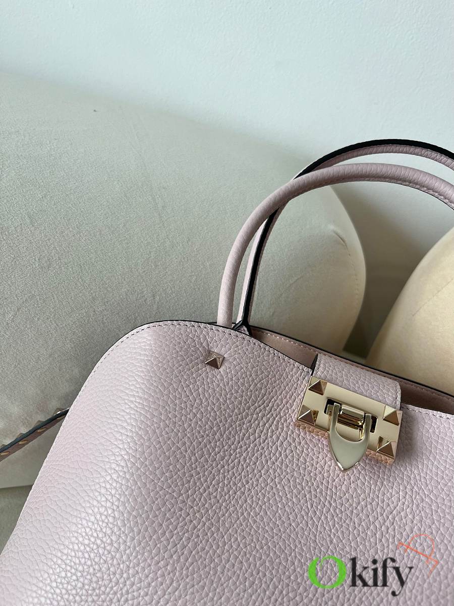 Okify Valentino Garavani Large Rockstud Top Handle Bag Light Pink 28x21x14cm