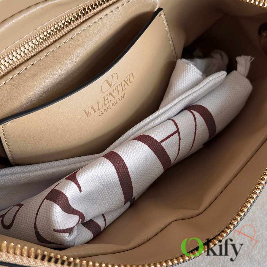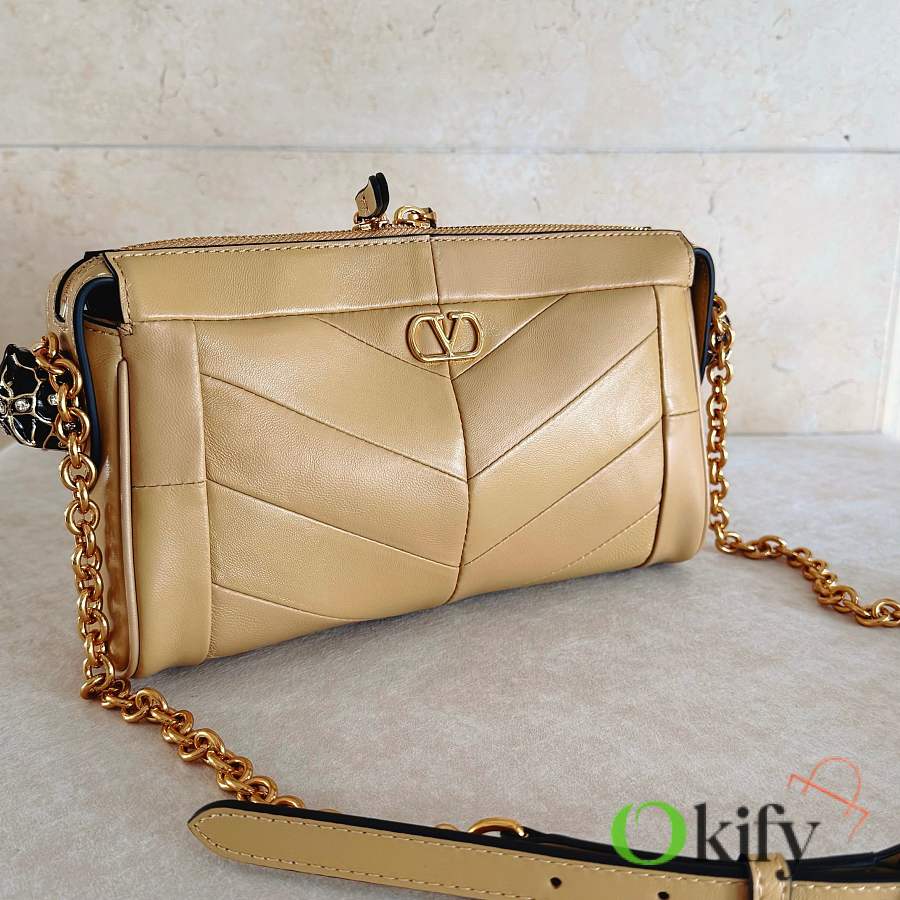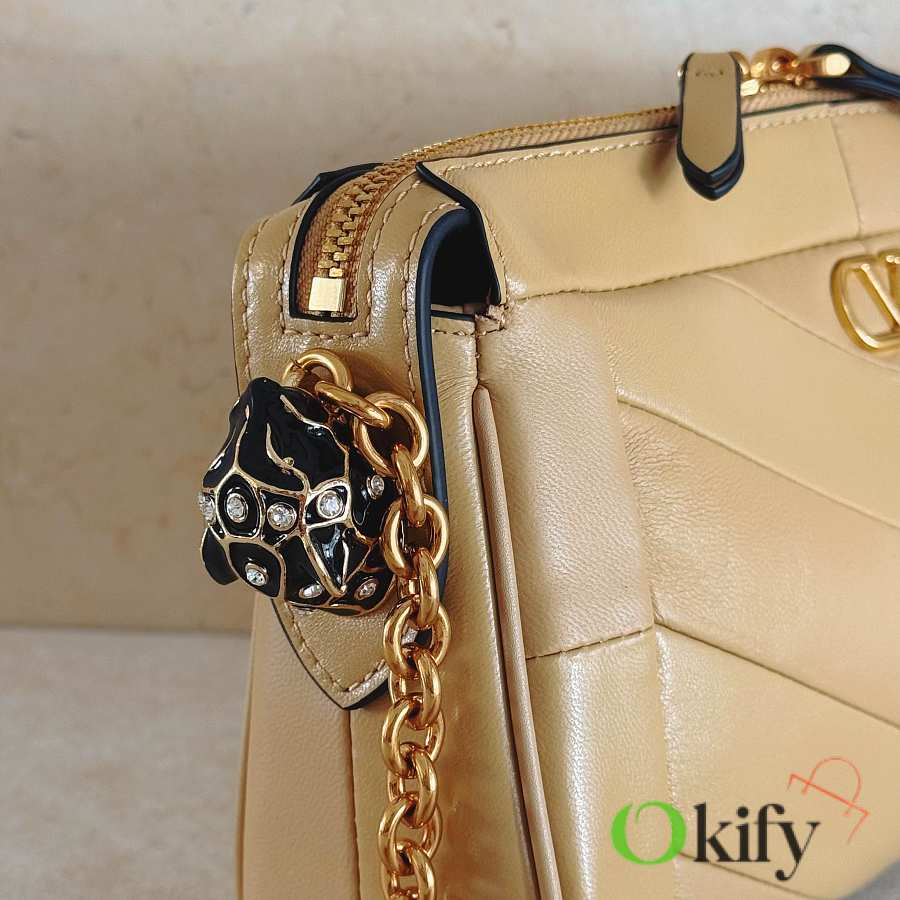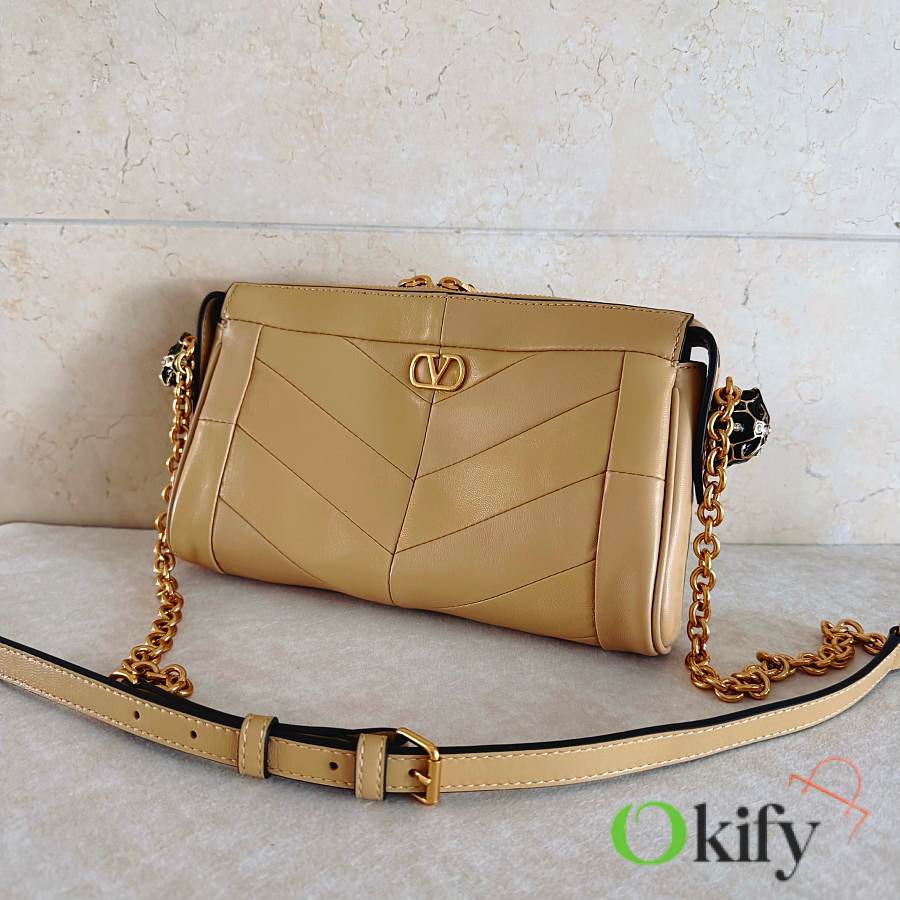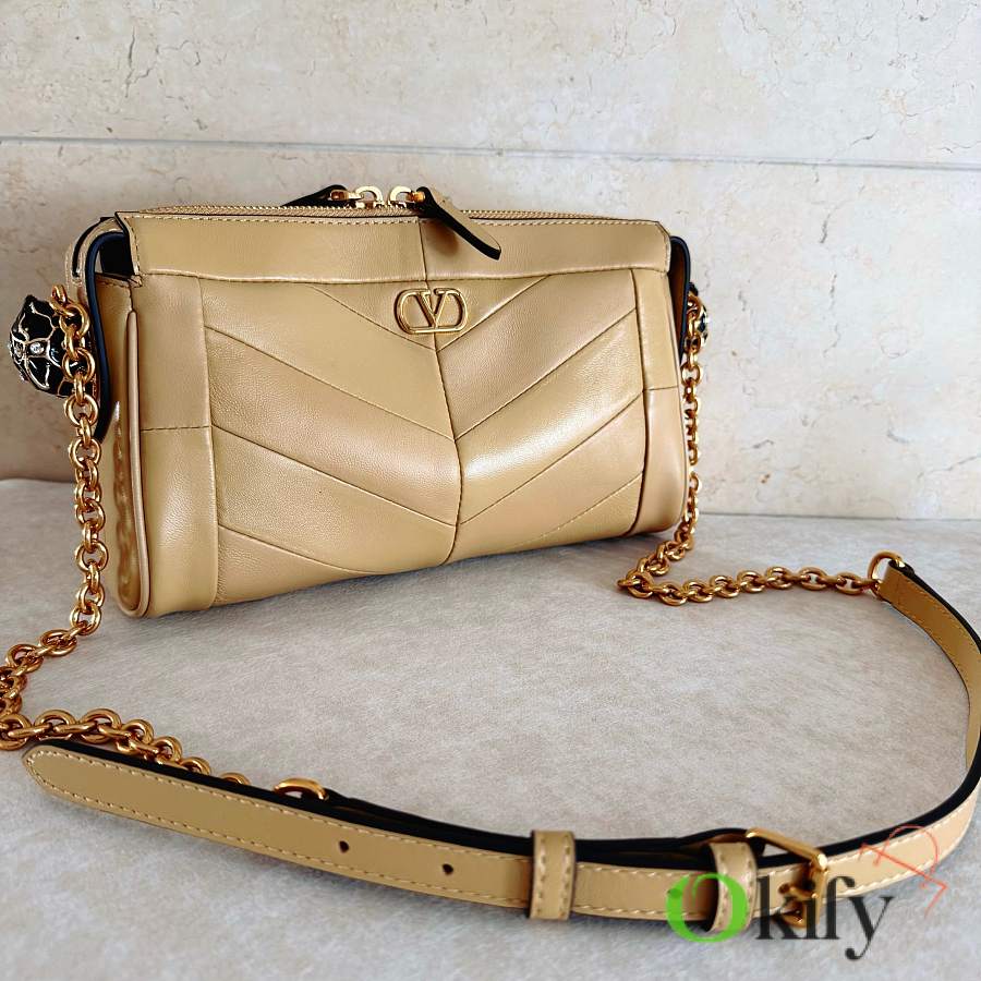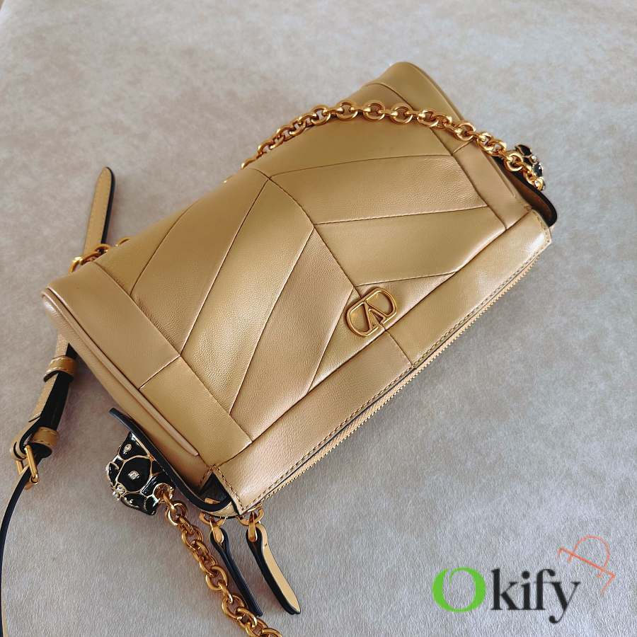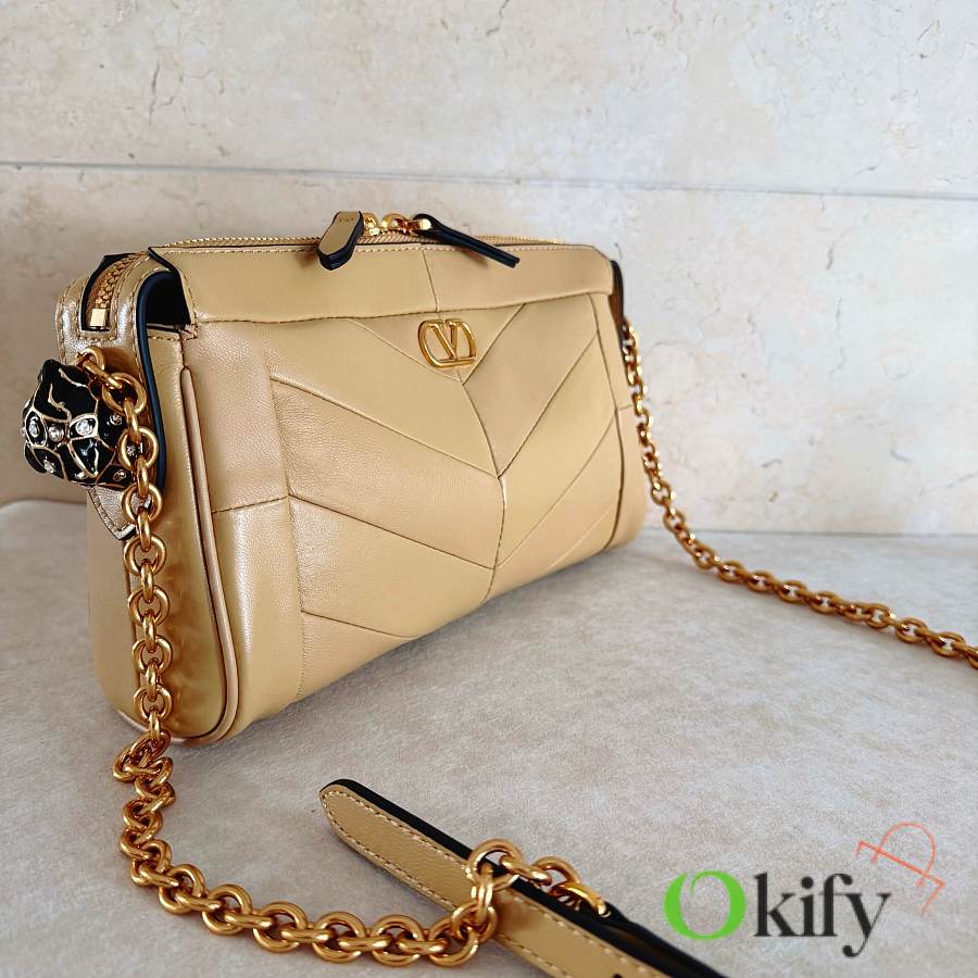 The VALENTINO GARAVANI small handbag features a V-shaped pattern created by combining glossy and matte lambskin leather, adorned with enamel animal heads and crystals. Thanks to its adjustable shoulder strap, this handbag can be worn over the shoulder or crossbody. - Vintage gold finish accessories - Vintage gold finish with VLOGO SIGNATURE metal details - Zipper closure - Dimensions: Width 24cm x Height 14cm x Depth 6cm
