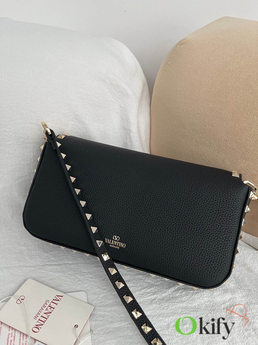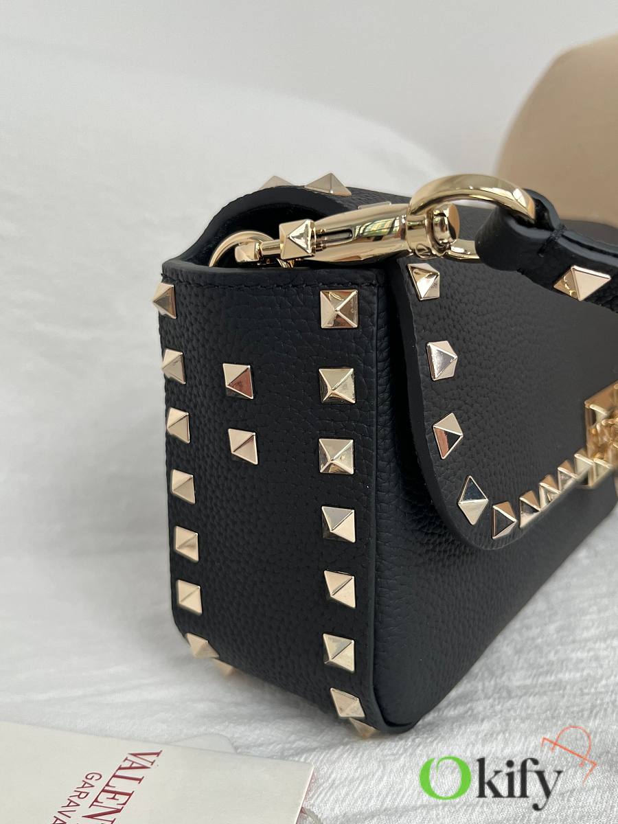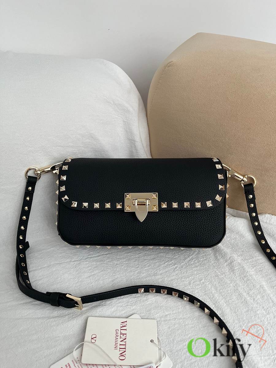 Model: 2299 GARAVANI ROCKSTUD grained calfskin handbag with signature hook and loop closure. - Metal-plated rivets and accessories - Hook and clasp opening and closing - Adjustable and detachable shoulder straps - An inner flap pocket - Dimensions: 24 cm (W) x 12 cm (H) x 6 cm (D)