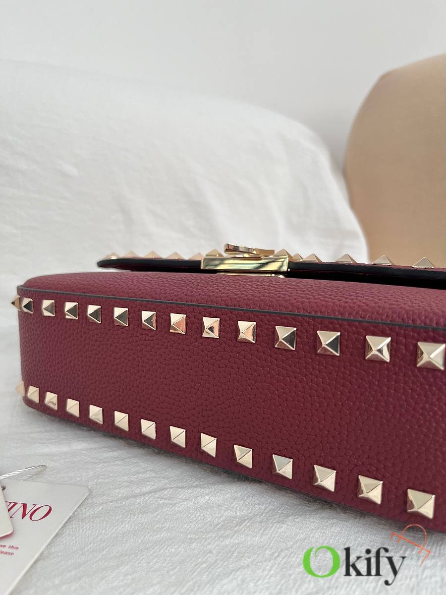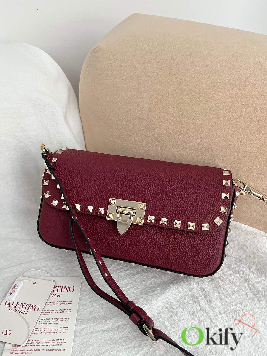 Model: 2299 GARAVANI ROCKSTUD grained calfskin handbag with signature hook and loop closure. - Metal-plated rivets and accessories - Hook and clasp opening and closing - Adjustable and detachable shoulder straps - An inner flap pocket - Dimensions: 24 cm (W) x 12 cm (H) x 6 cm (D)