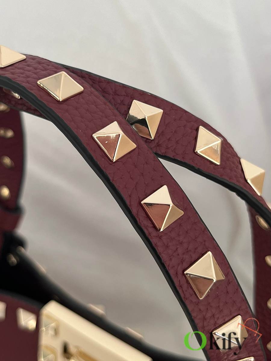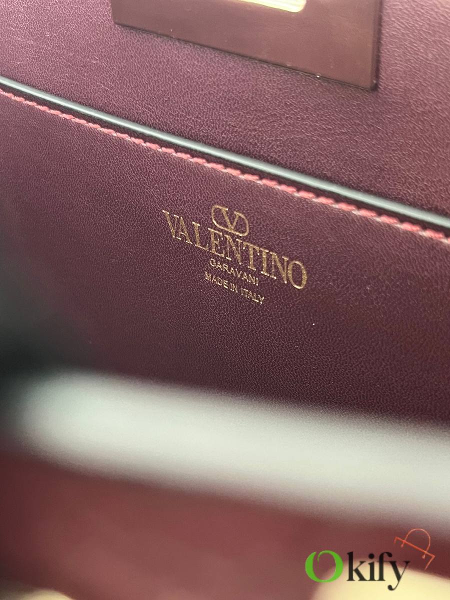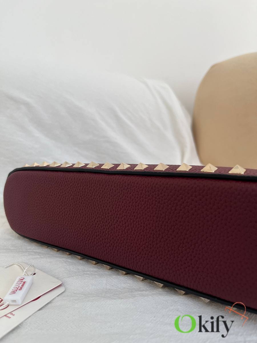 Valentino Garavani Rockstud small crossbody bag in grained calfskin. The iconic hook closure has been reinterpreted with a stopper zipper pull. Metallic effect rivets and hardware. Double closure: zipper and hook. Adjustable and detachable shoulder strap.