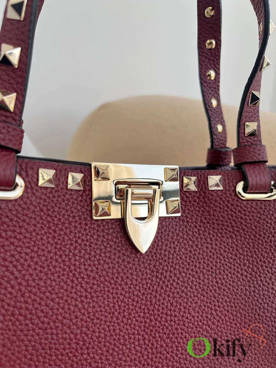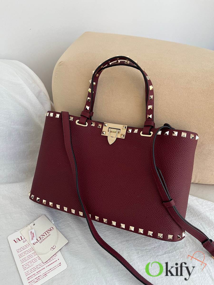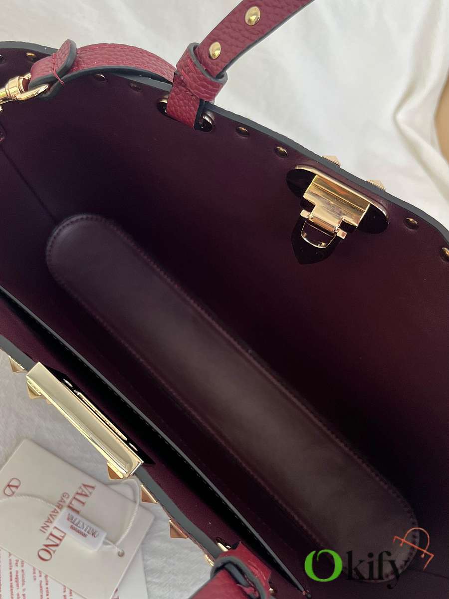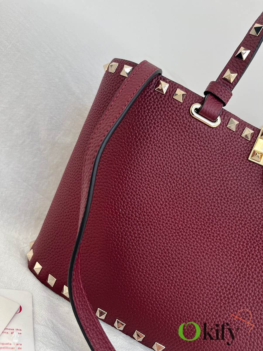 Valentino Garavani Rockstud small crossbody bag in grained calfskin. The iconic hook closure has been reinterpreted with a stopper zipper pull. Metallic effect rivets and hardware. Double closure: zipper and hook. Adjustable and detachable shoulder strap.