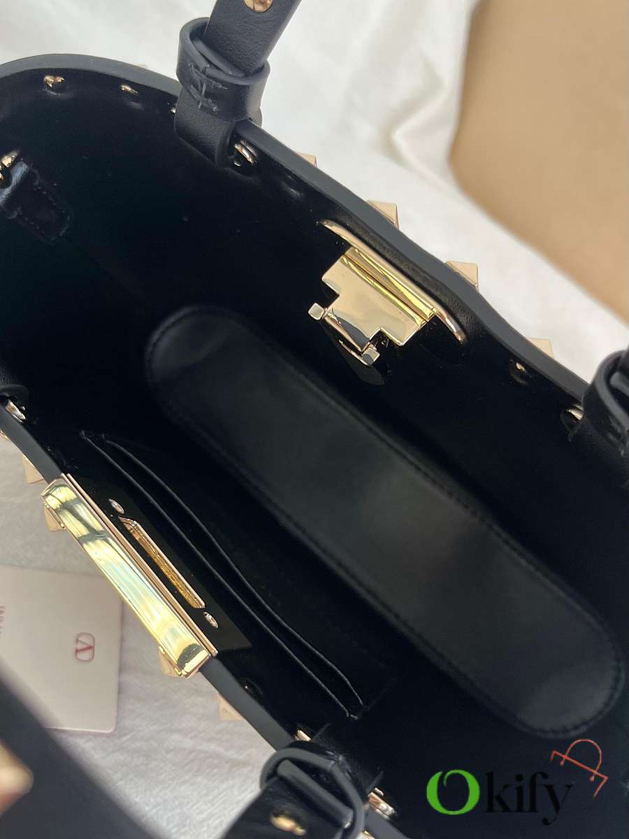 Valentino Garavani Rockstud small crossbody bag in grained calfskin. The iconic hook closure has been reinterpreted with a stopper zipper pull. Metallic effect rivets and hardware. Double closure: zipper and hook. Adjustable and detachable shoulder strap.