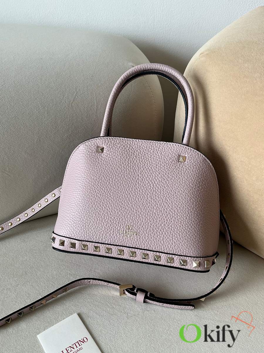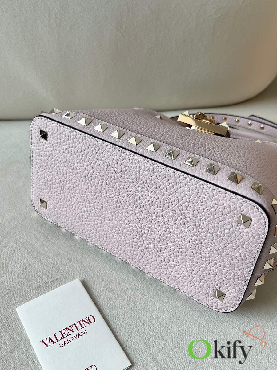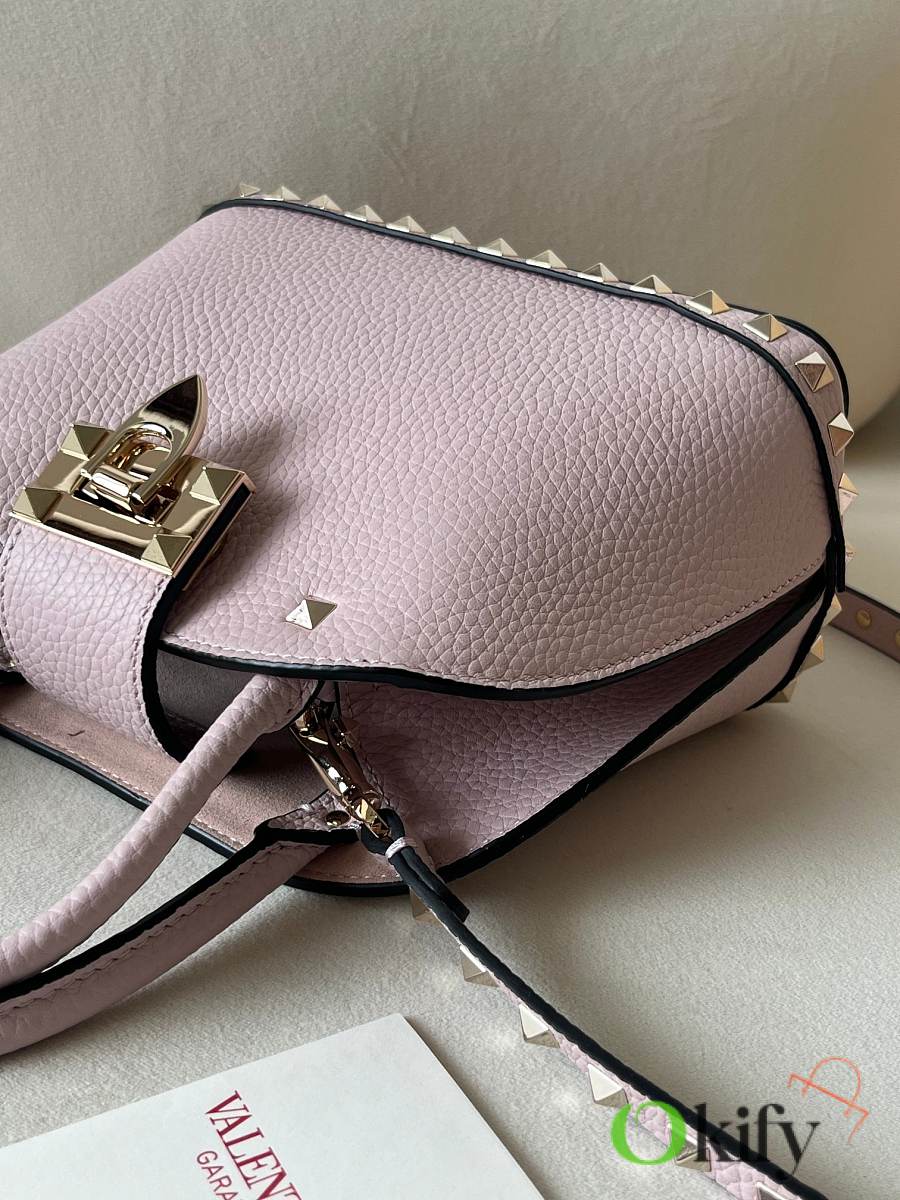 Okify Valentino Garavani Small Rockstud Top Handle Bag Light Pink 21x15x10cm