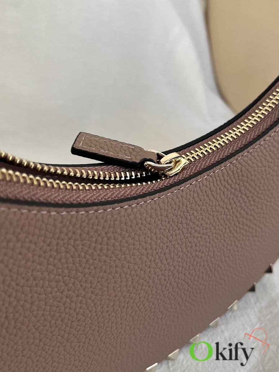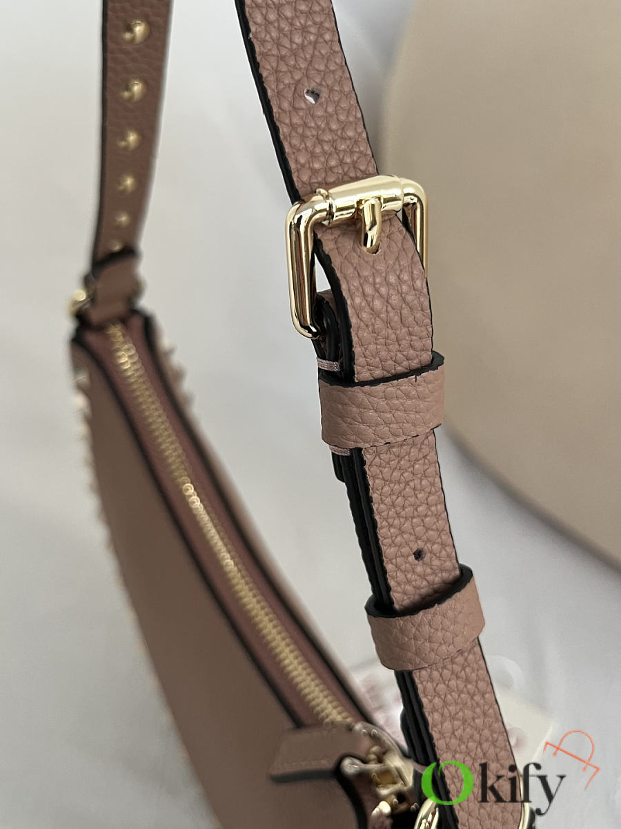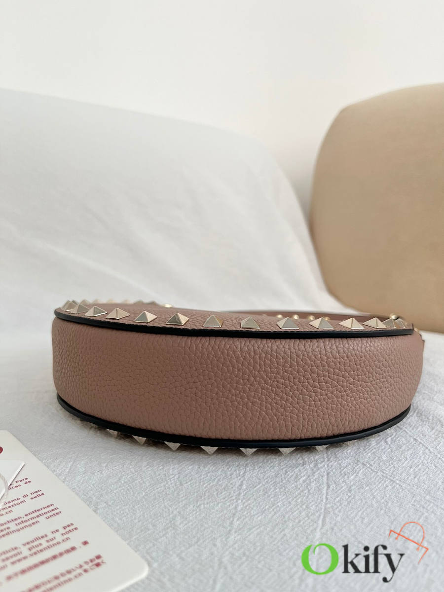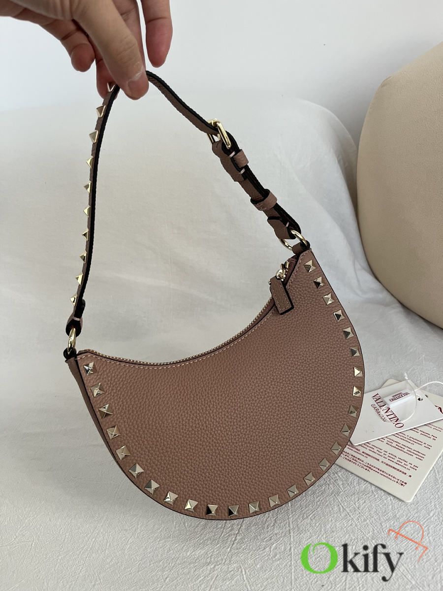 Product Code: WAI7VSH0NO VALENTINO GARAVANI ROCKSTUD Mini Grained Cowhide Hobo Handbag with Adjustable Handle, can be carried on the shoulder or by hand. - Zipper opening and closing - Platinum-plated rivets and metal fittings - Lambskin leather lining with an internal card slot - Adjustable leather handle, height (vertical distance from midpoint to top of bag): 18 cm - Dimensions: Width 20 cm x Height 12 cm x Depth 4 cm Model: 2211