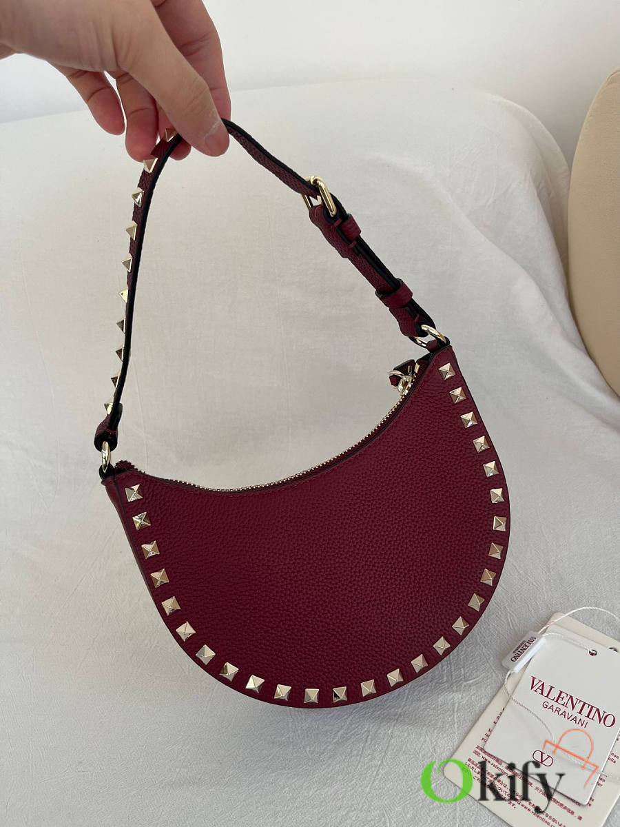Okify Valentino Mini Rockstud Hobo Bag Red 20x12x4cm