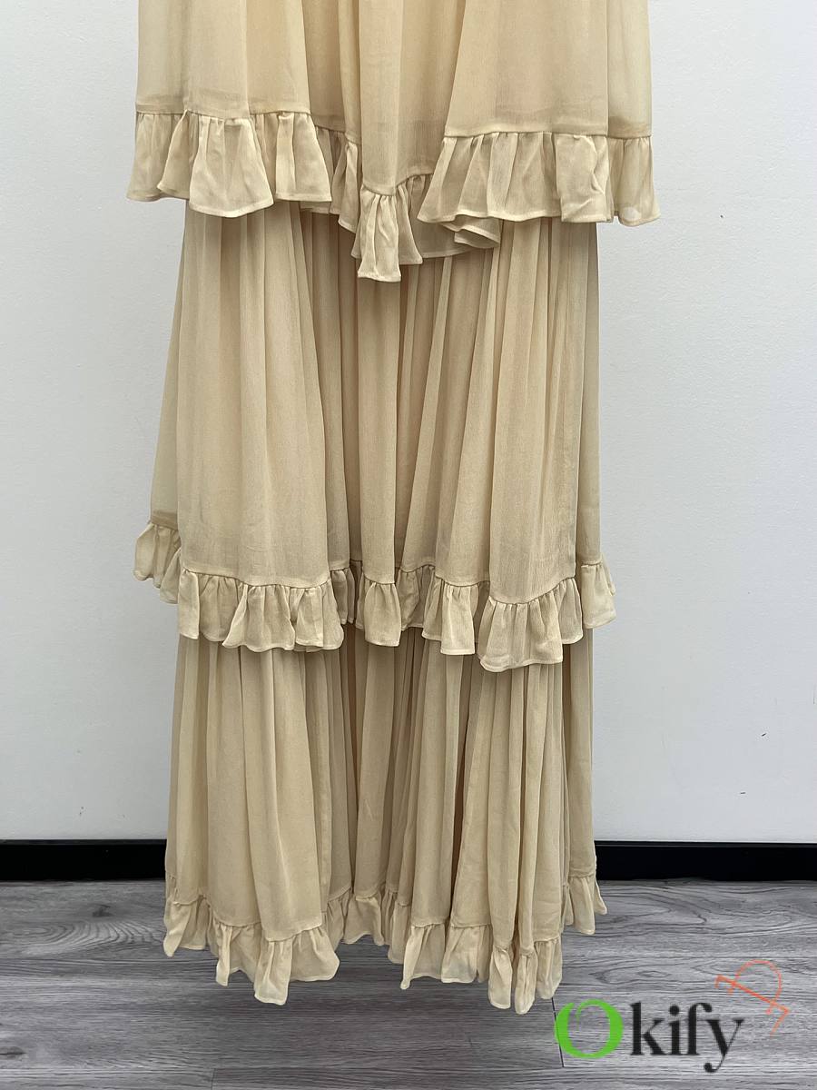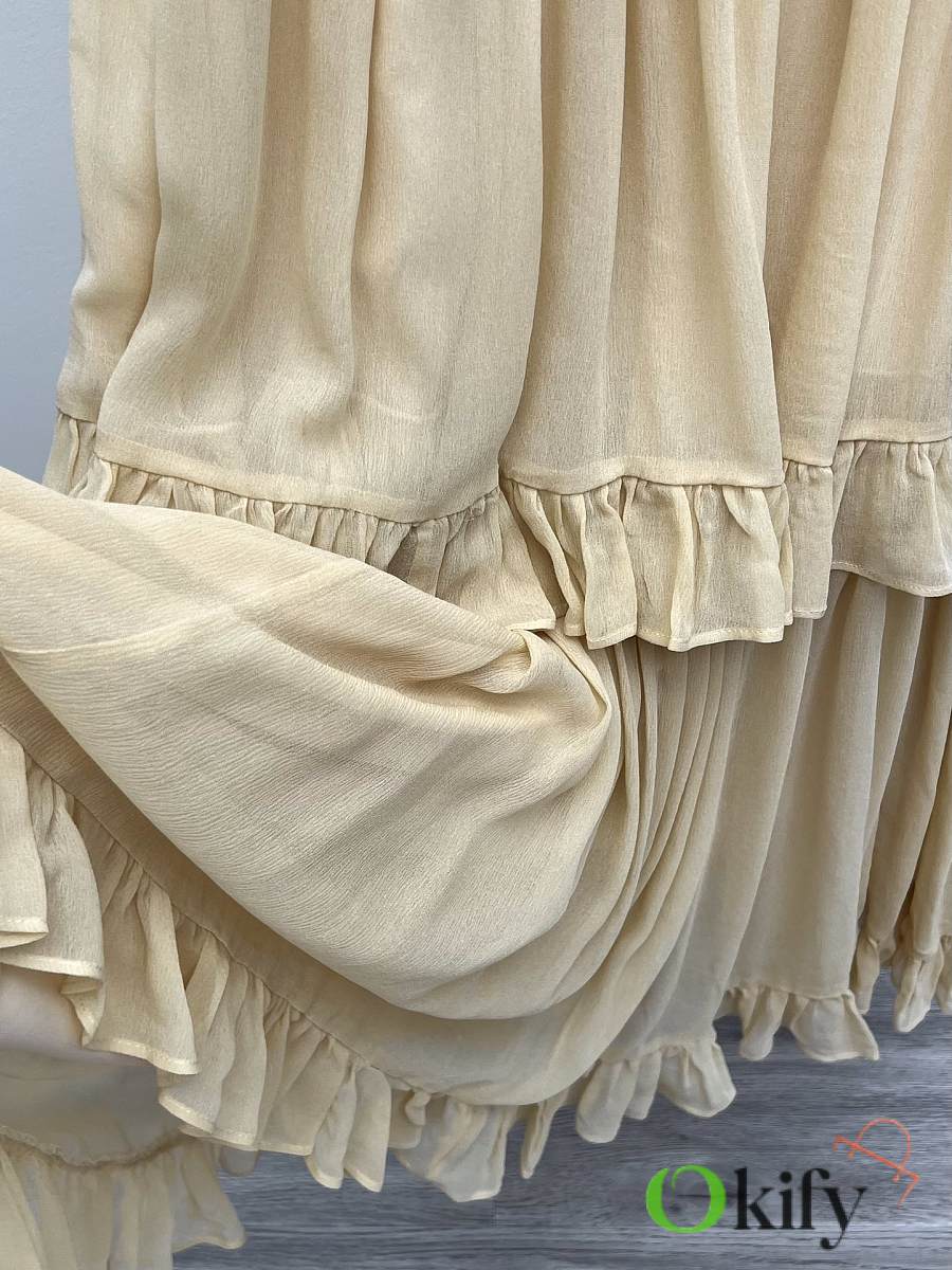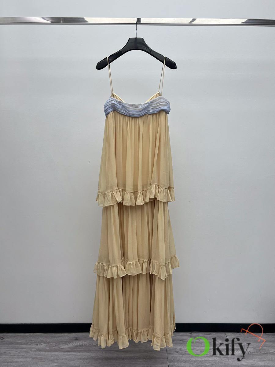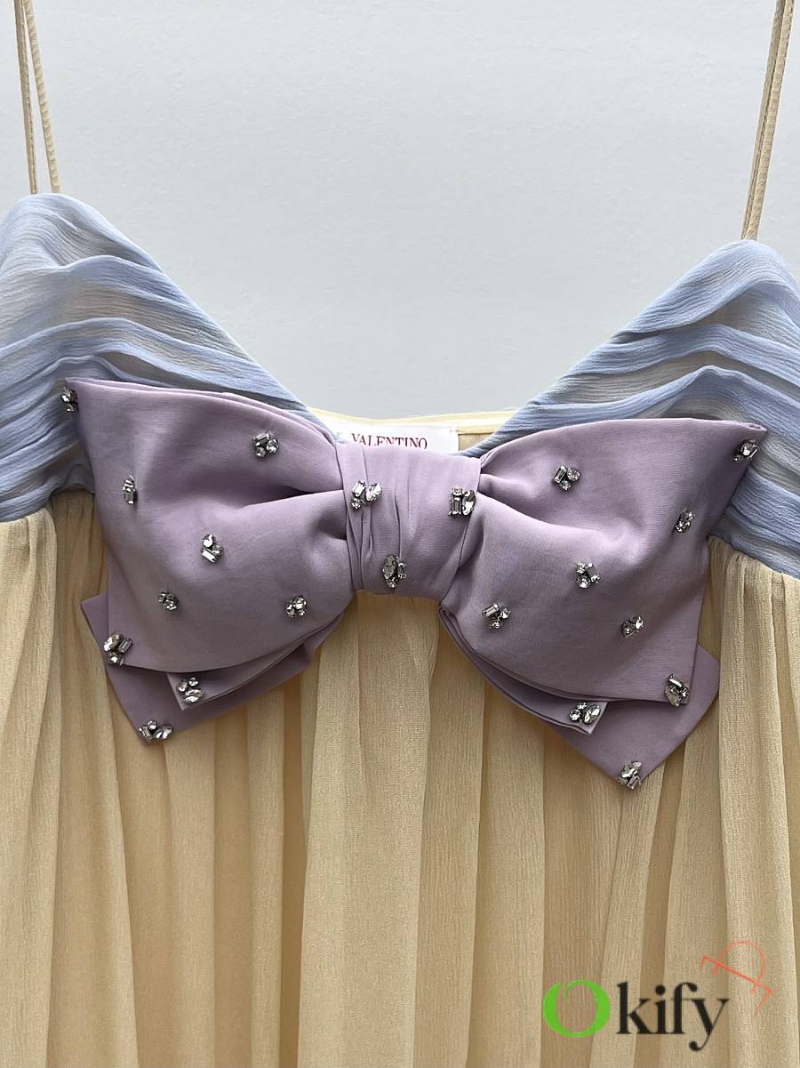 The new season's maximalism combines history and modernity, art and fashion Every detail is carefully designed, and the light yellow layers of skirt are luxurious and dreamy. The soft collision of blue and purple bows is full of fairy spirit Can be paired with fur to create a French retro and luxurious palace style