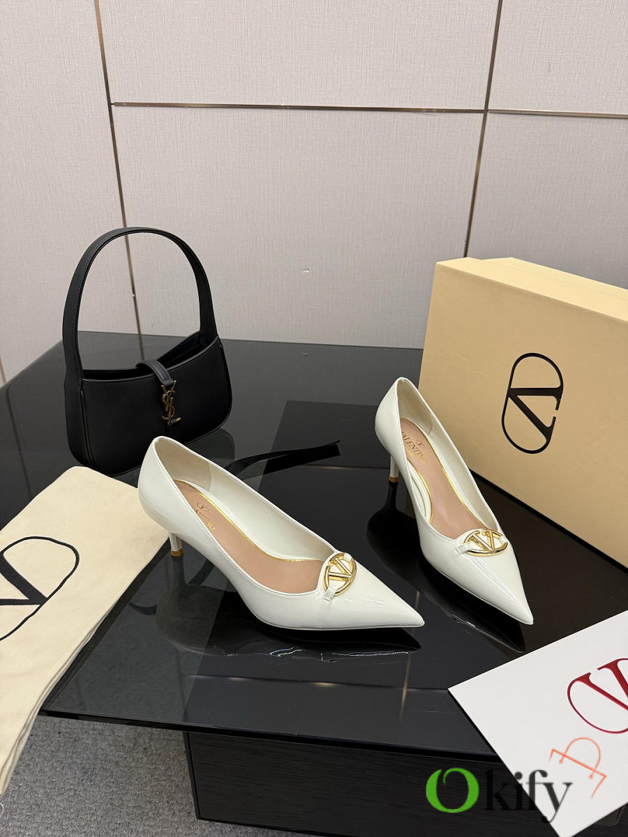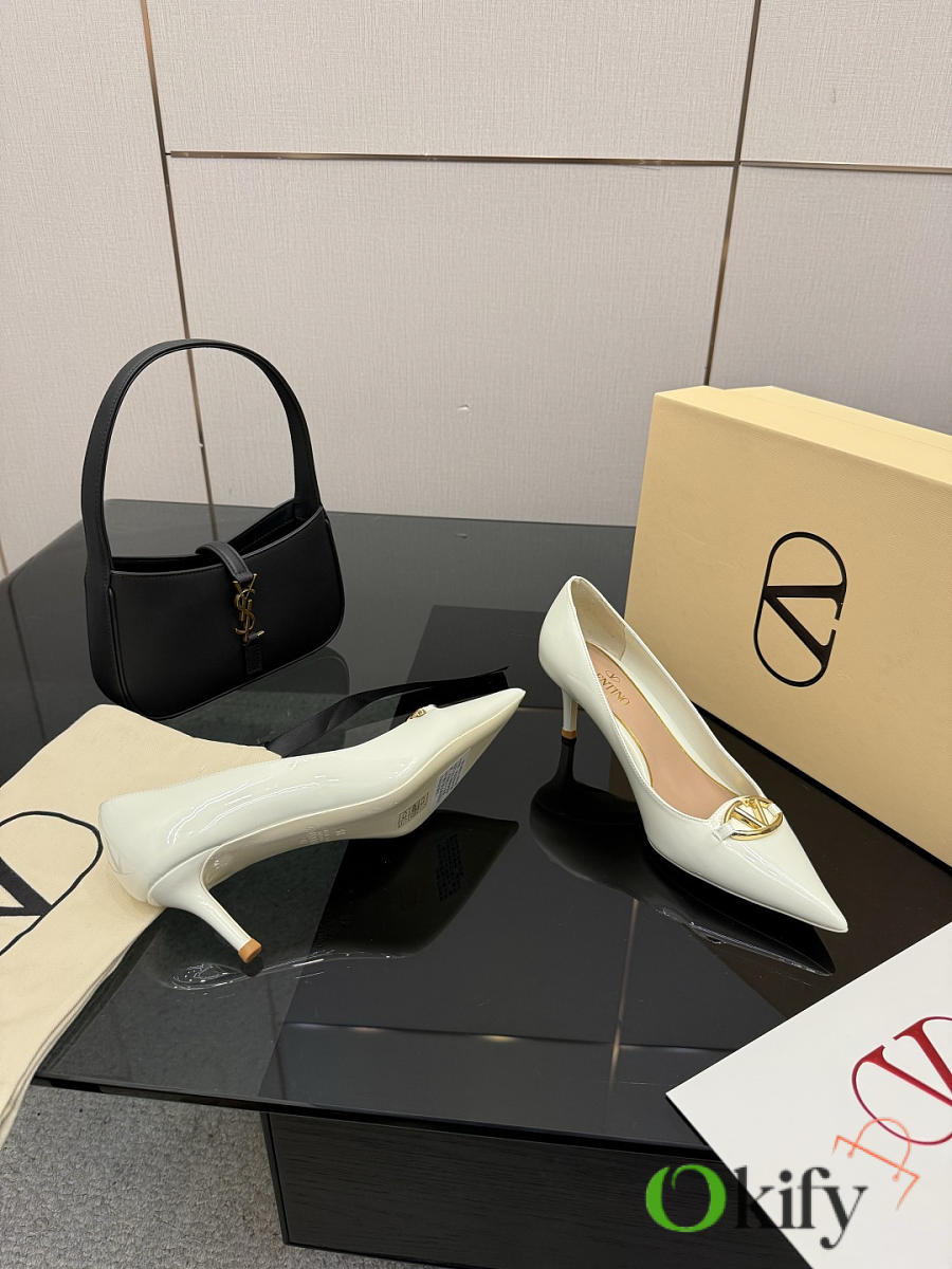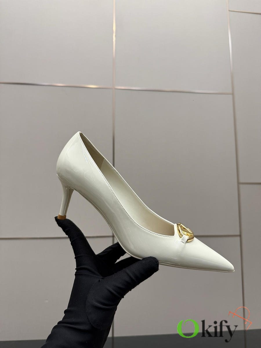 Okify Valentino White Patent Leather High Heels 6.5cm