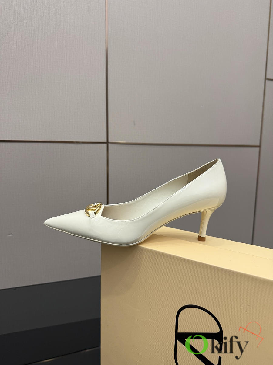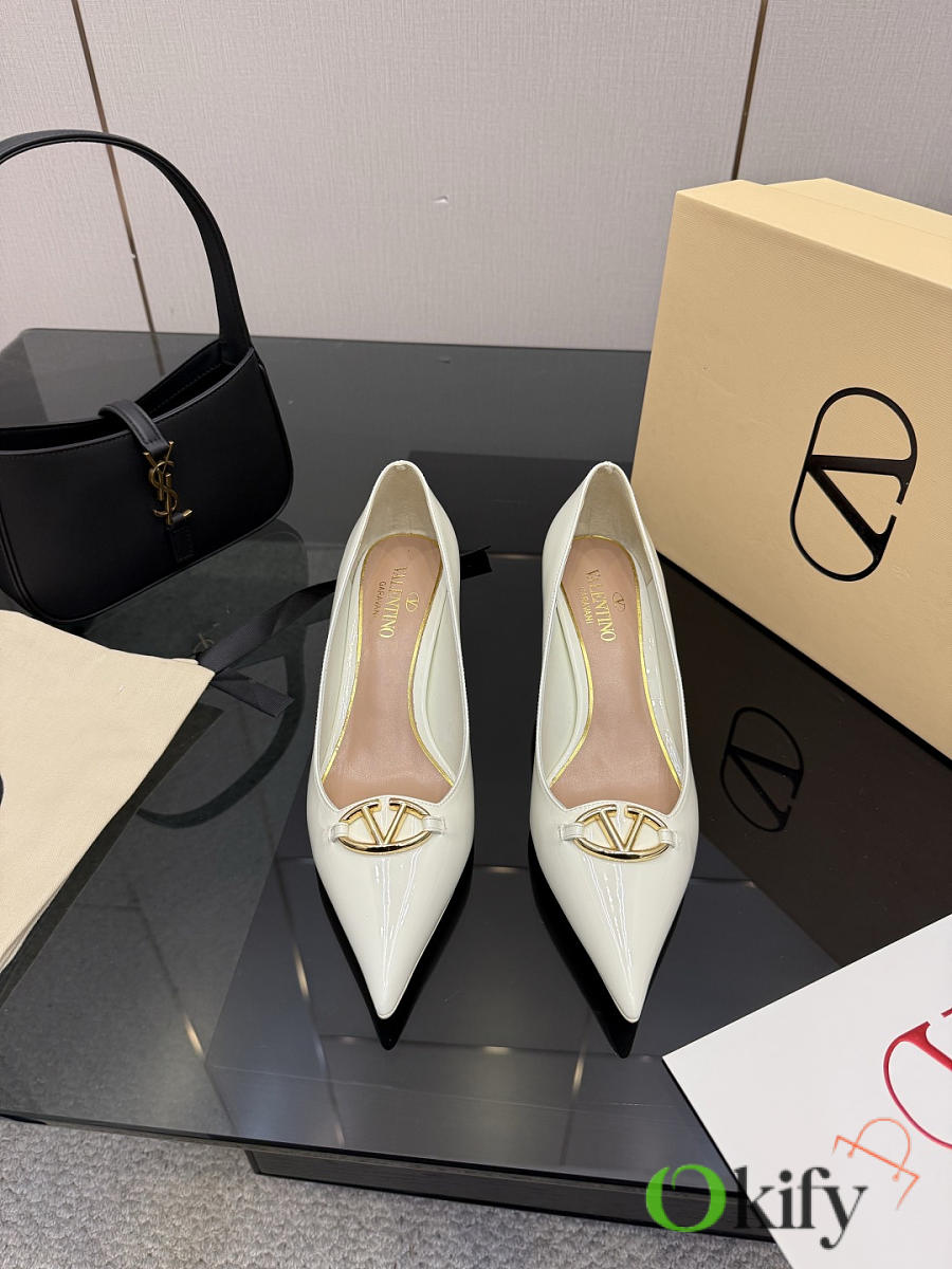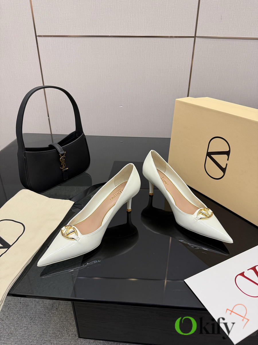 Okify Valentino White Patent Leather High Heels 6.5cm