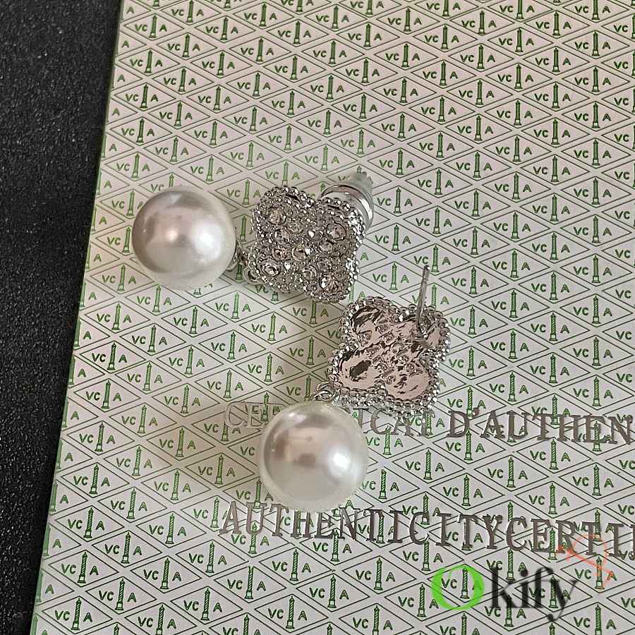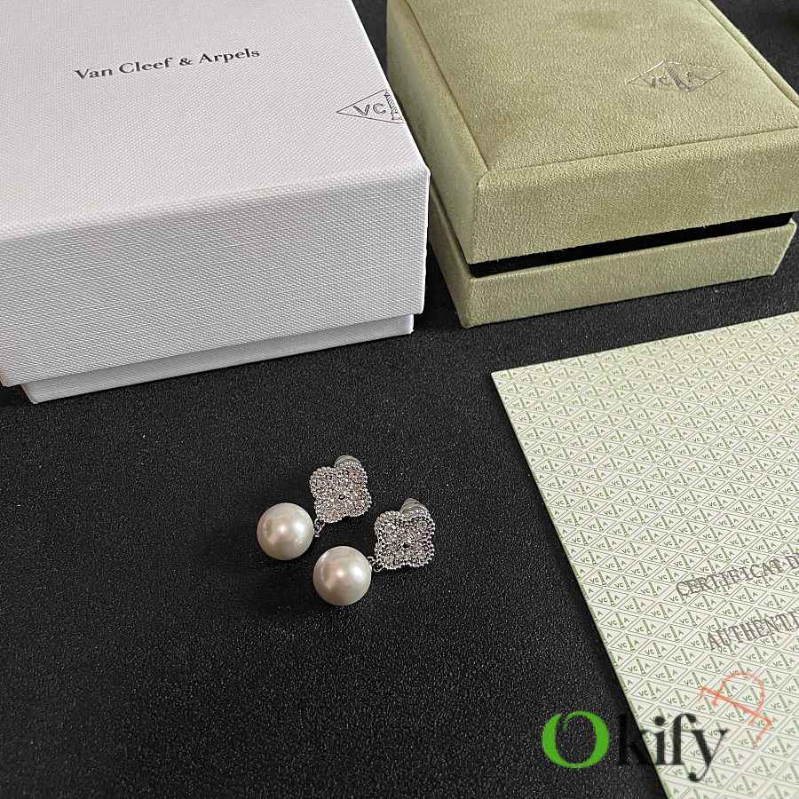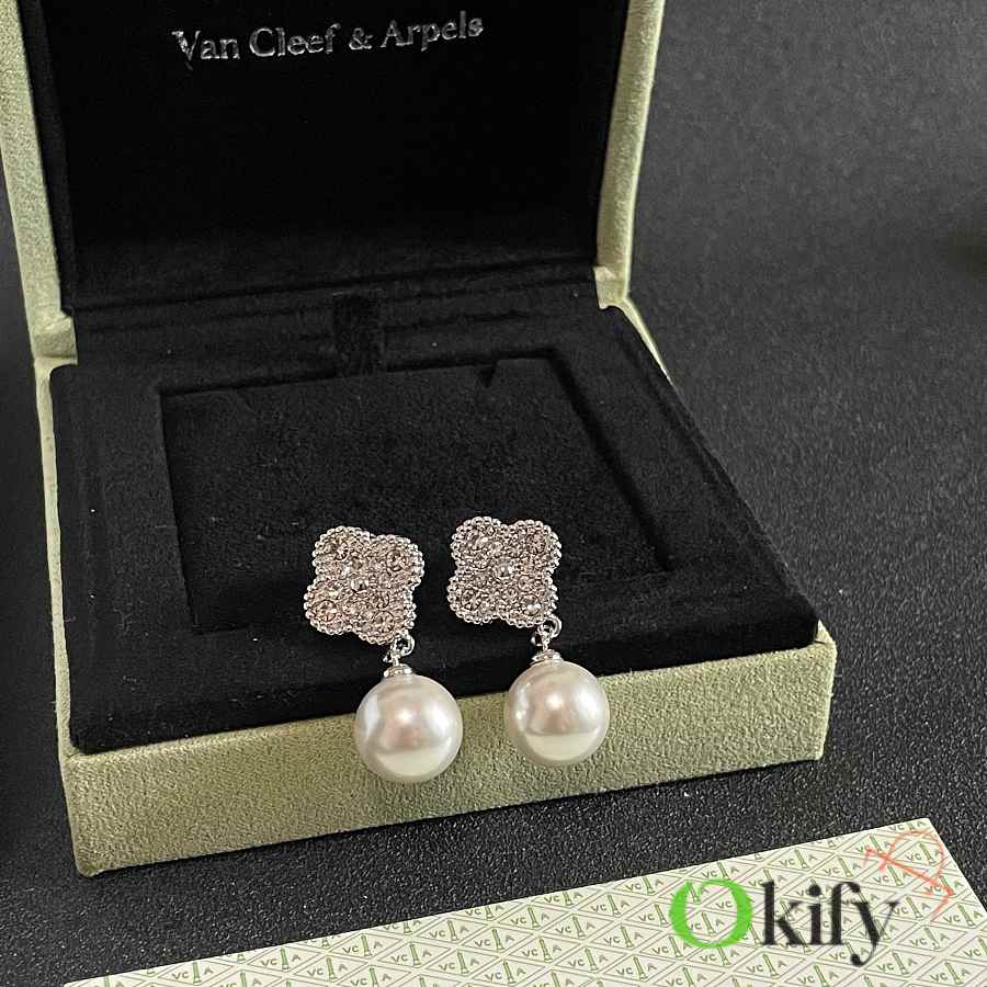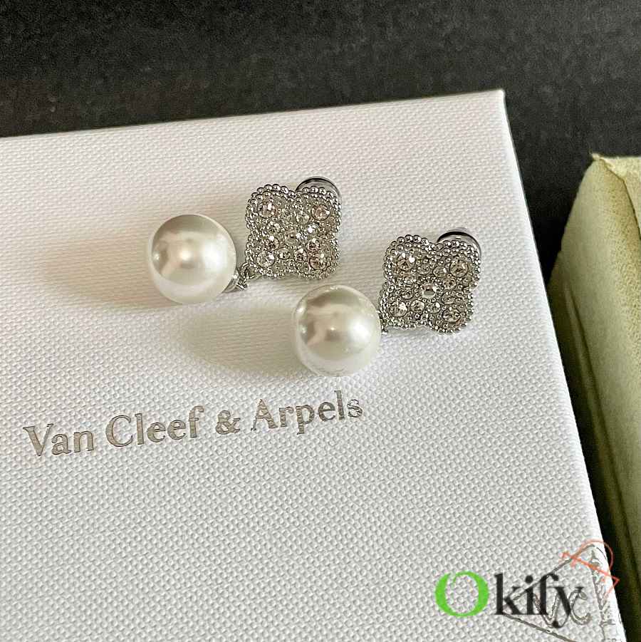 Okify VCA Silver Earrings With Diamond And Pearl