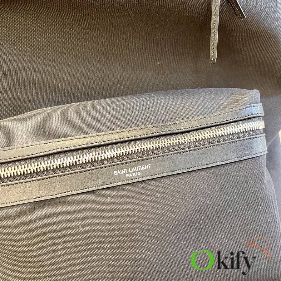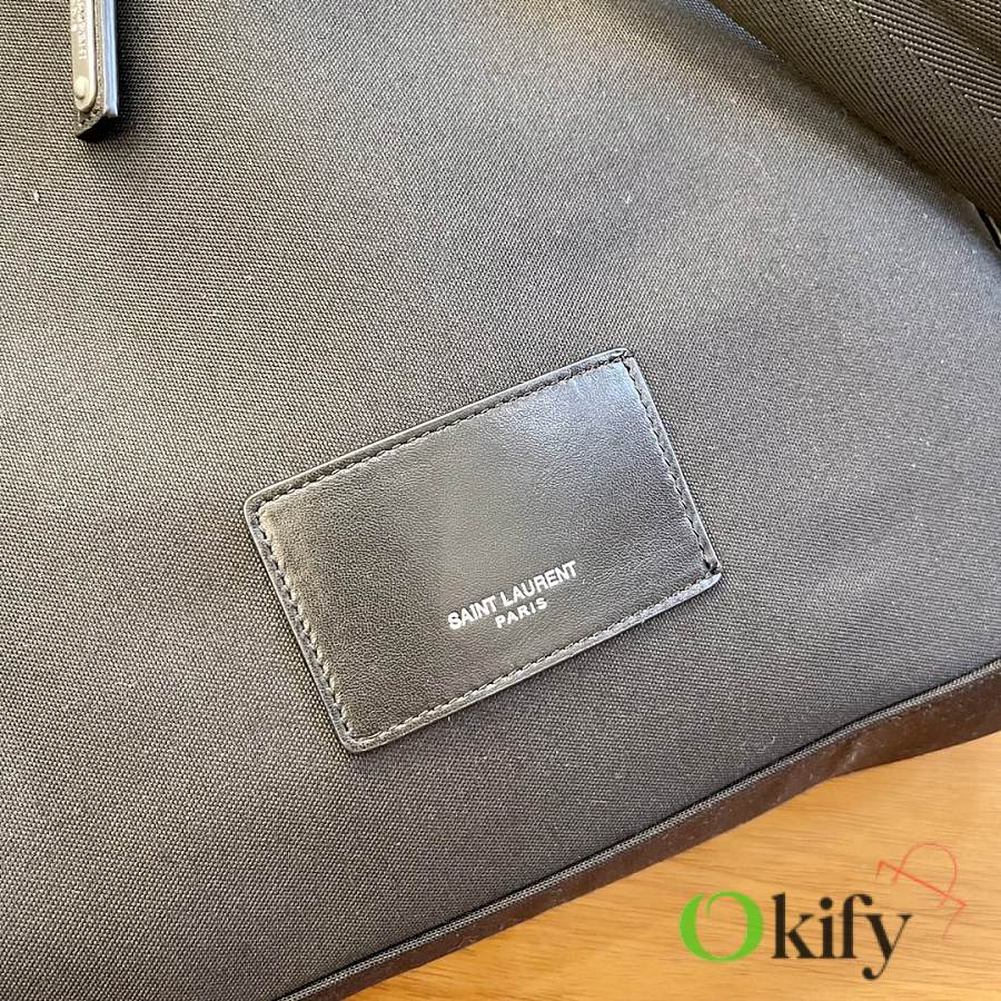 Pure black canvas, cool style! Simple, fashionable, and versatile; The interior features a key ring, phone pocket, zippered compartment, iPad slot, and laptop compartment, and even has an earphone jack on the back. It's lightweight, convenient, practical, and spacious! A must-have for lazy people, understated yet stylish, perfect for those who don't like overly complicated designs Size: 31-41-22cm Model: 534967580