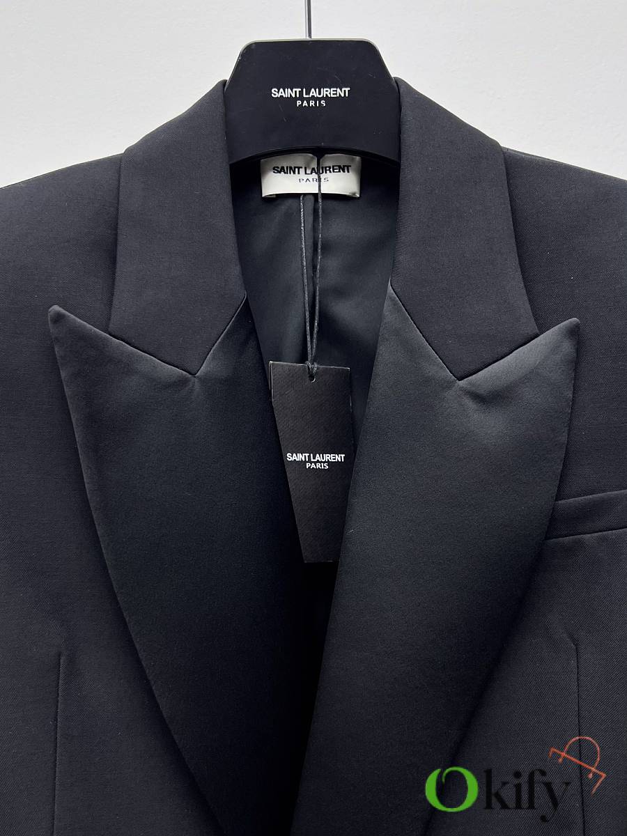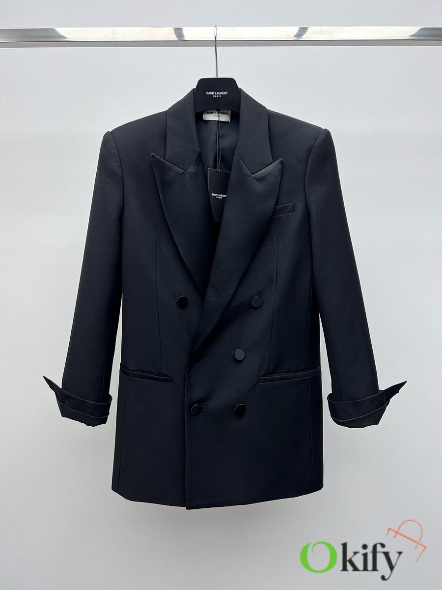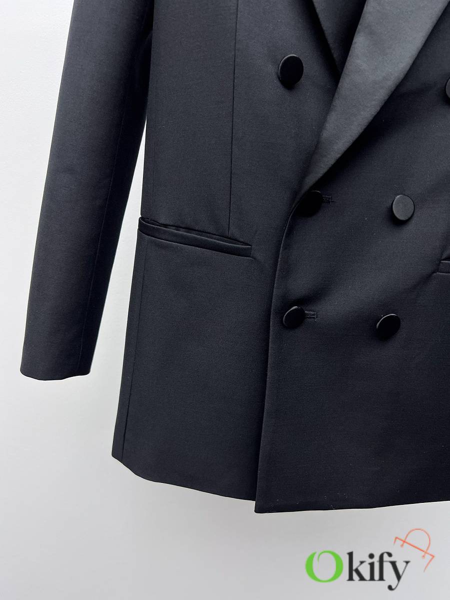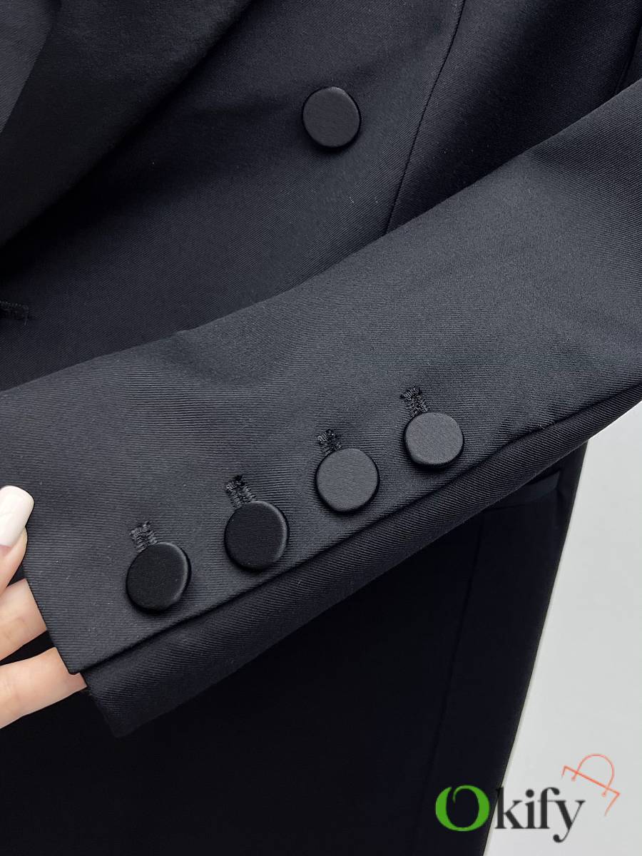 Classic double-breasted smoking suit Acetate stitching gun collar full of aura Six satin-covered buttons and two patch pocket details Sexy and charming with a long skirt