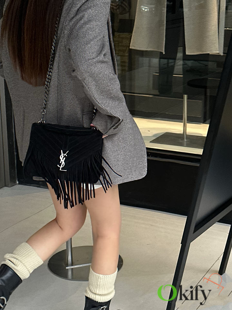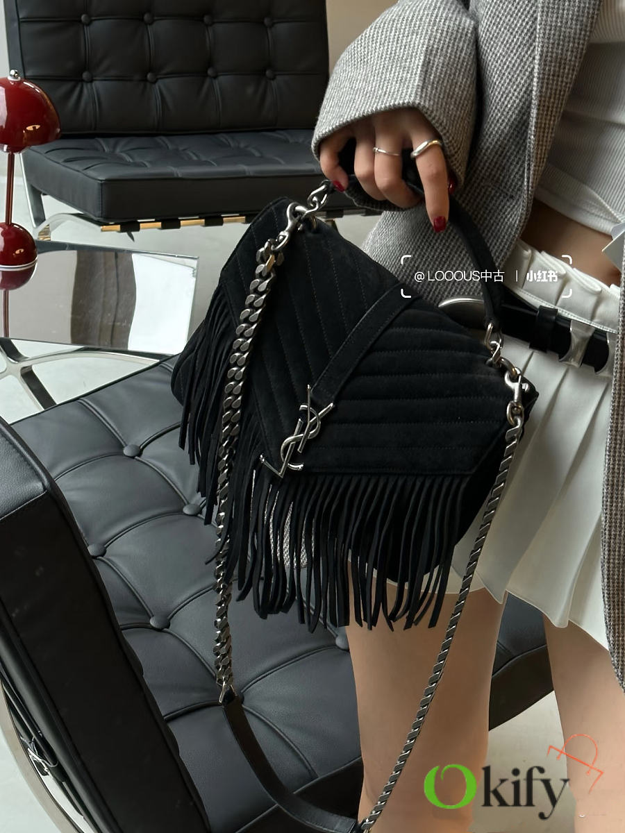 Okify YSL College Tassels Bag Black Suede 24x17x6.5cm