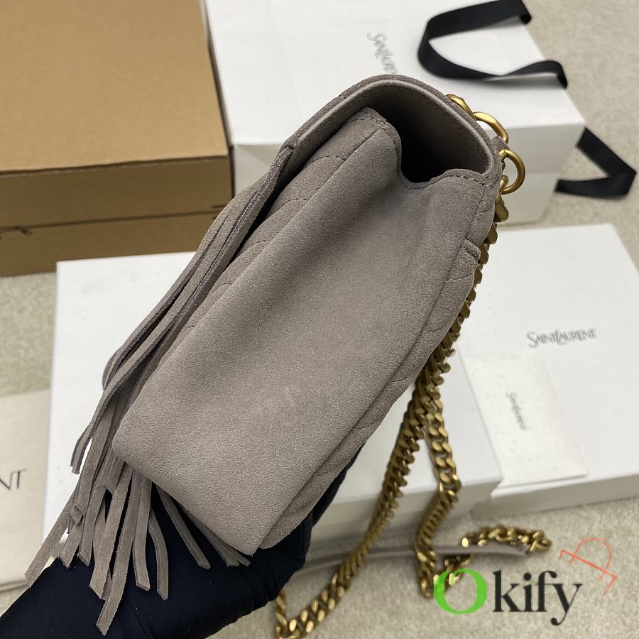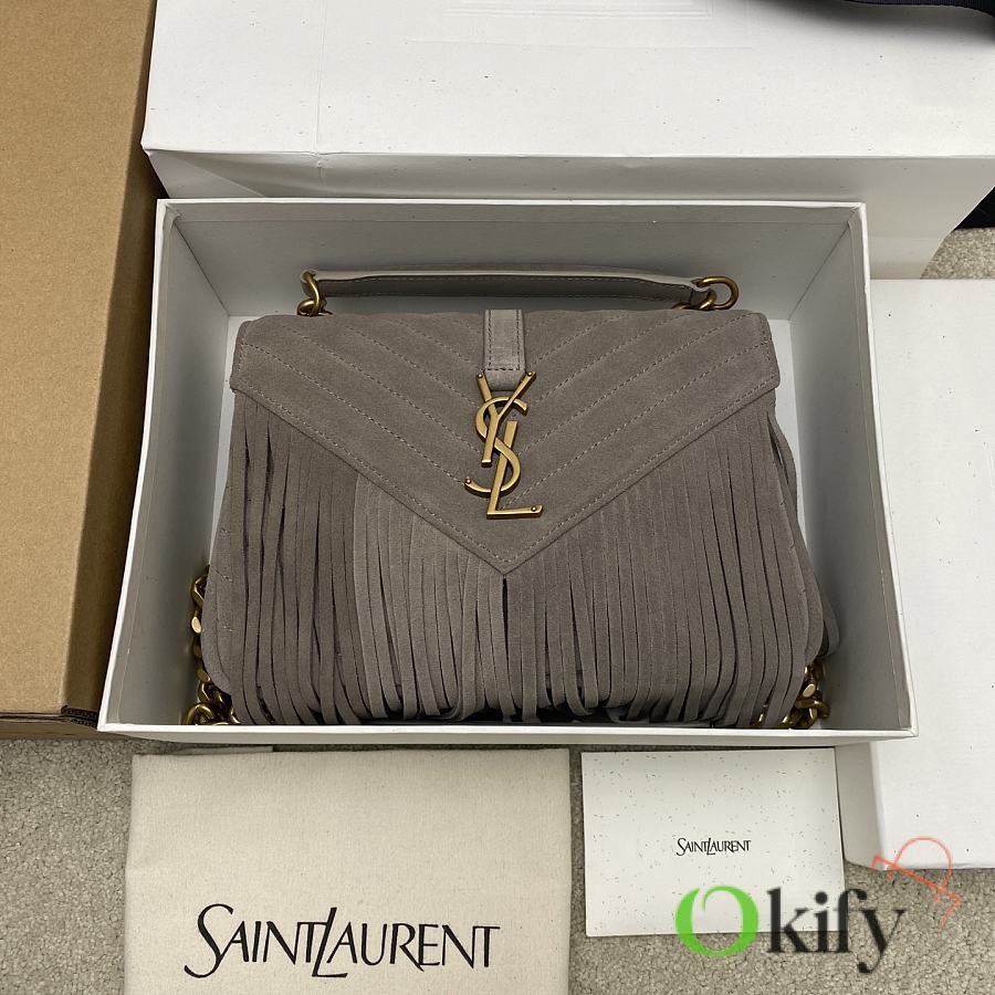 Okify YSL College Tassels Bag Gray Suede 24x17x6.5cm