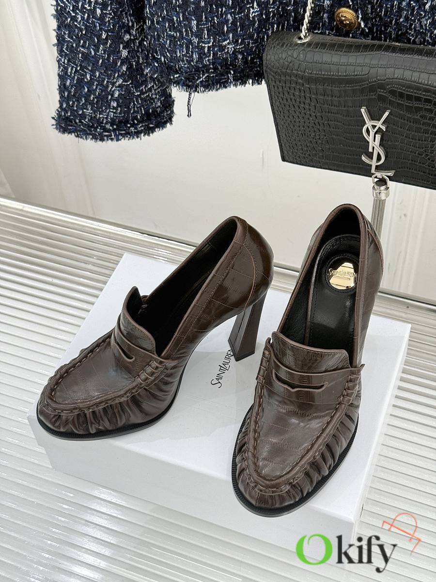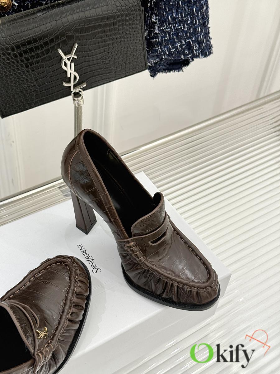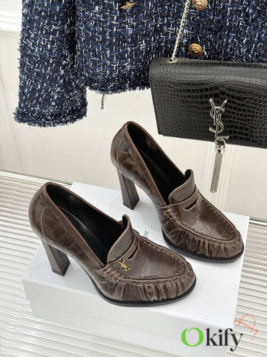 Okify YSL Dark Brown Horizontal Leather High Heels 10.5cm
