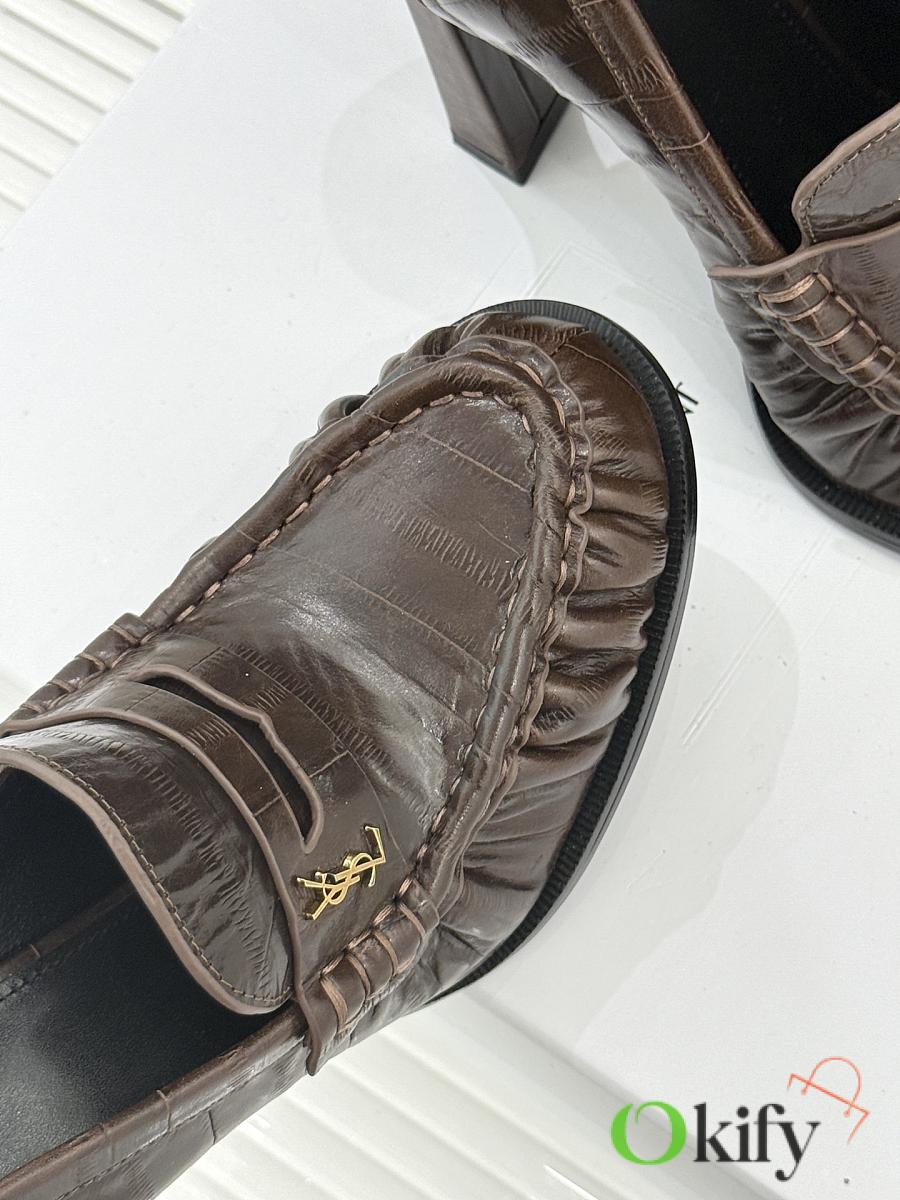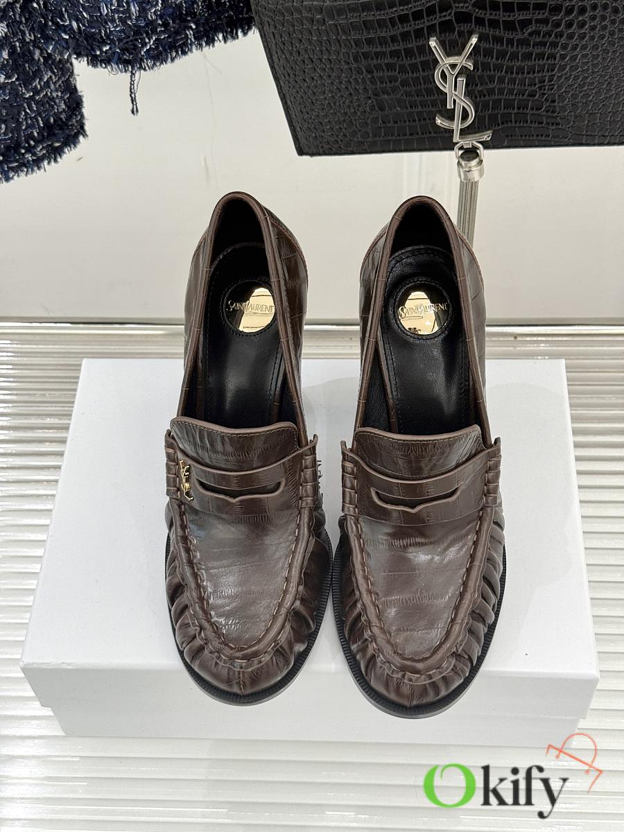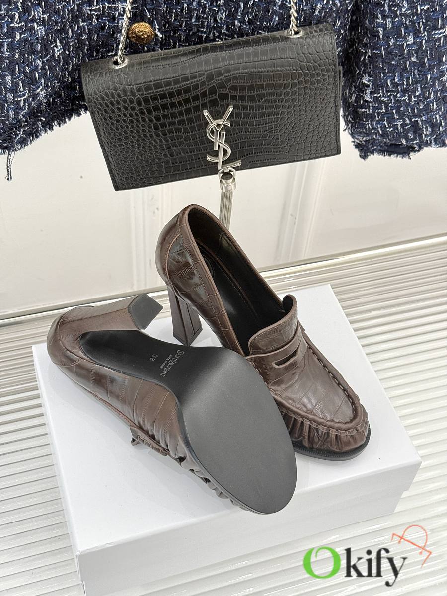 Okify YSL Dark Brown Horizontal Leather High Heels 10.5cm