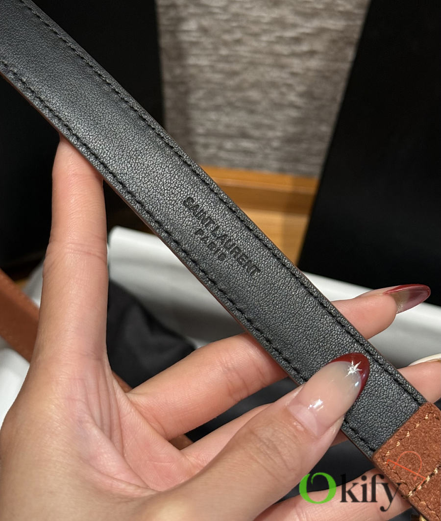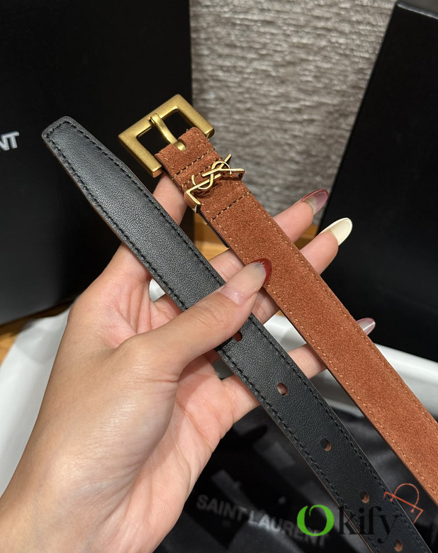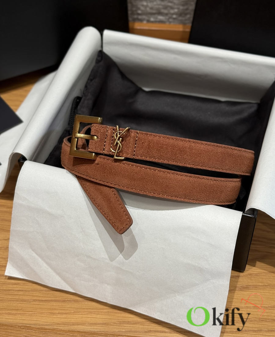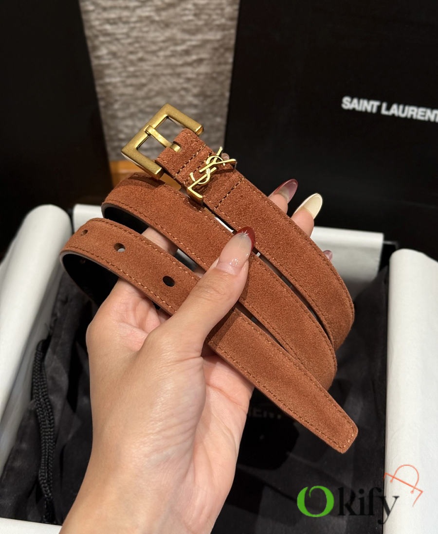 Okify YSL Dark Brown Suede Belt With Gold Hardware 2cm