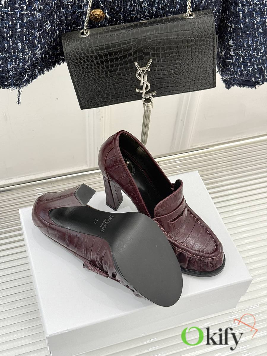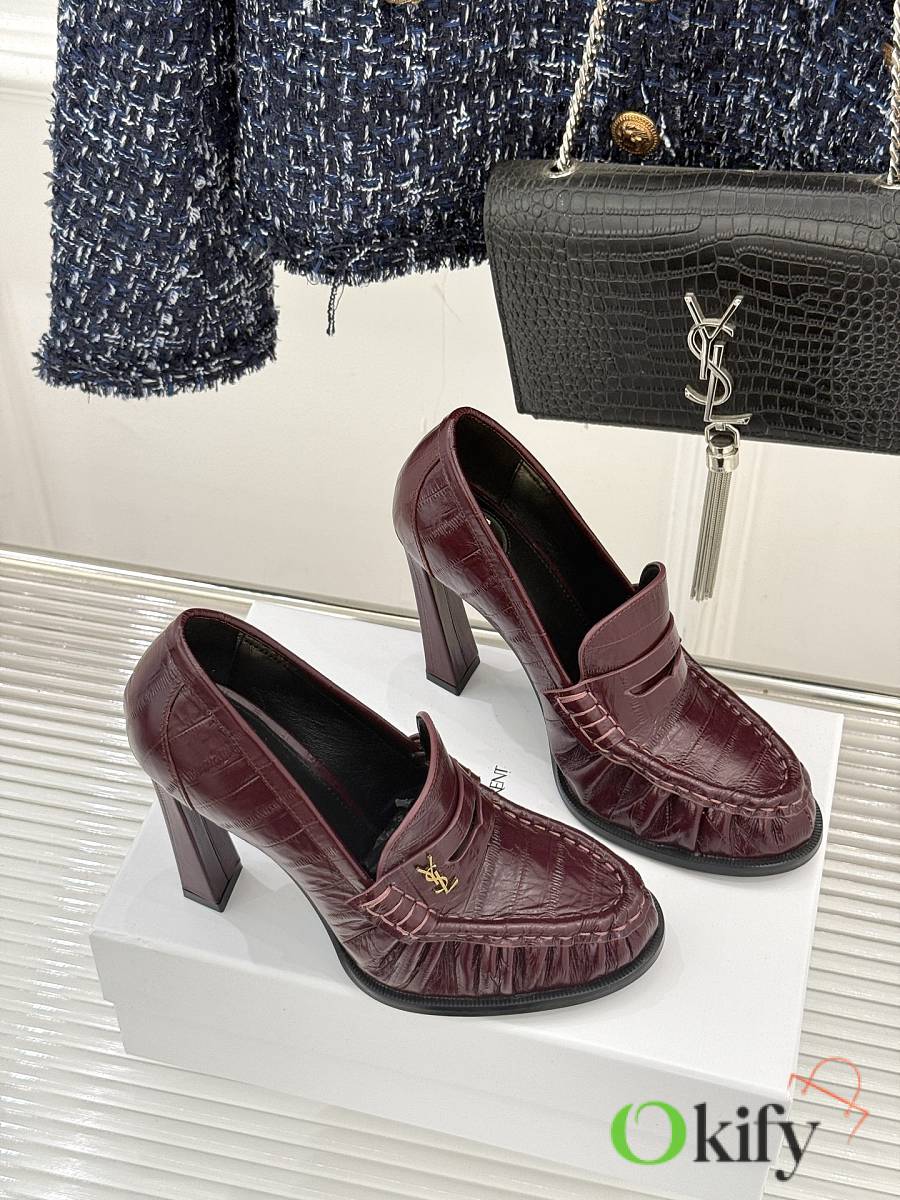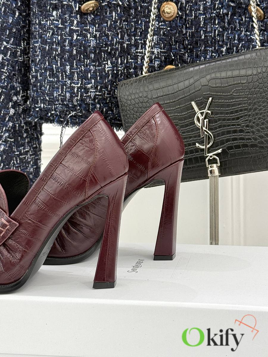 Okify YSL Dark Red Horizontal Leather High Heels 10.5cm