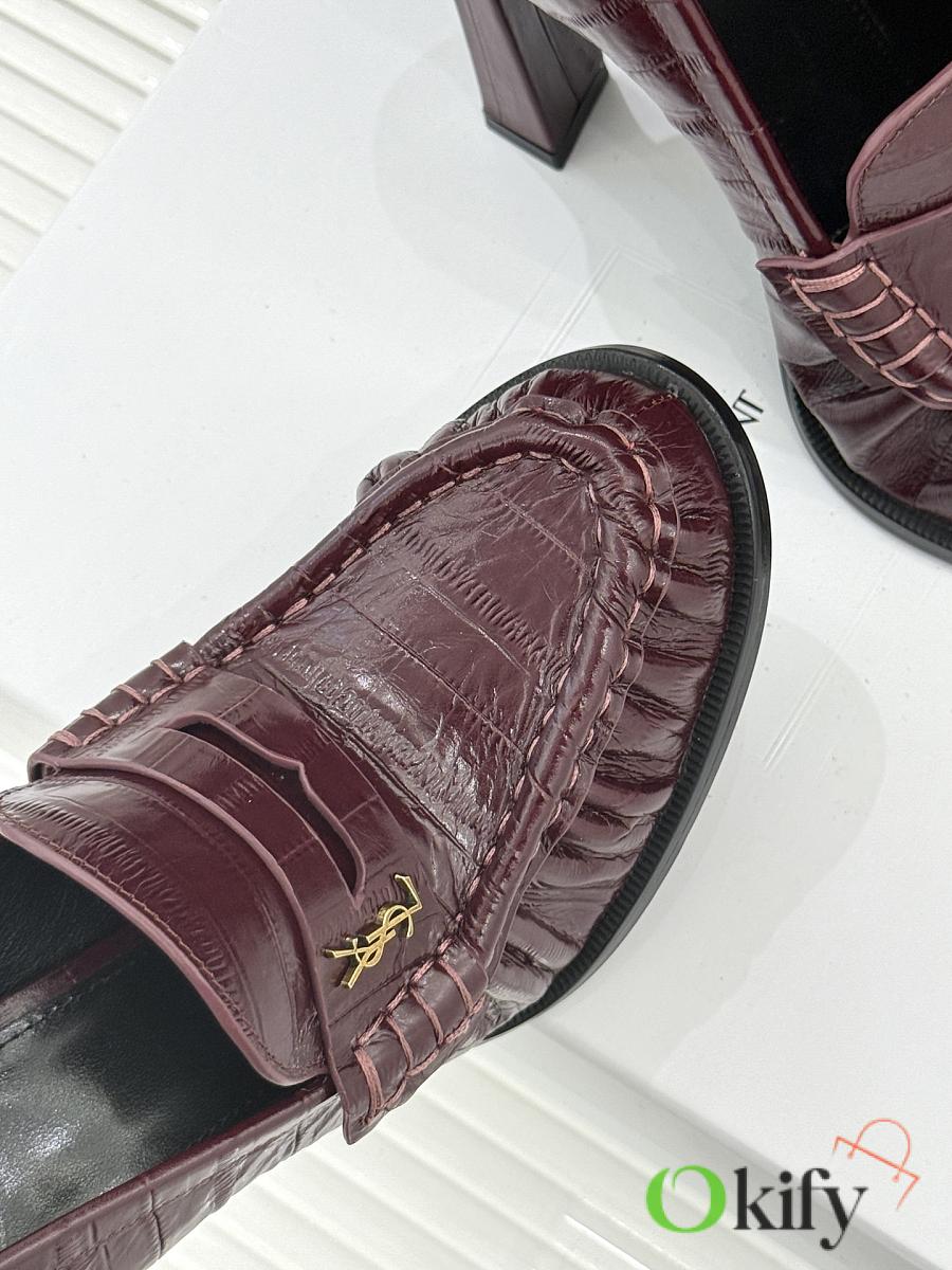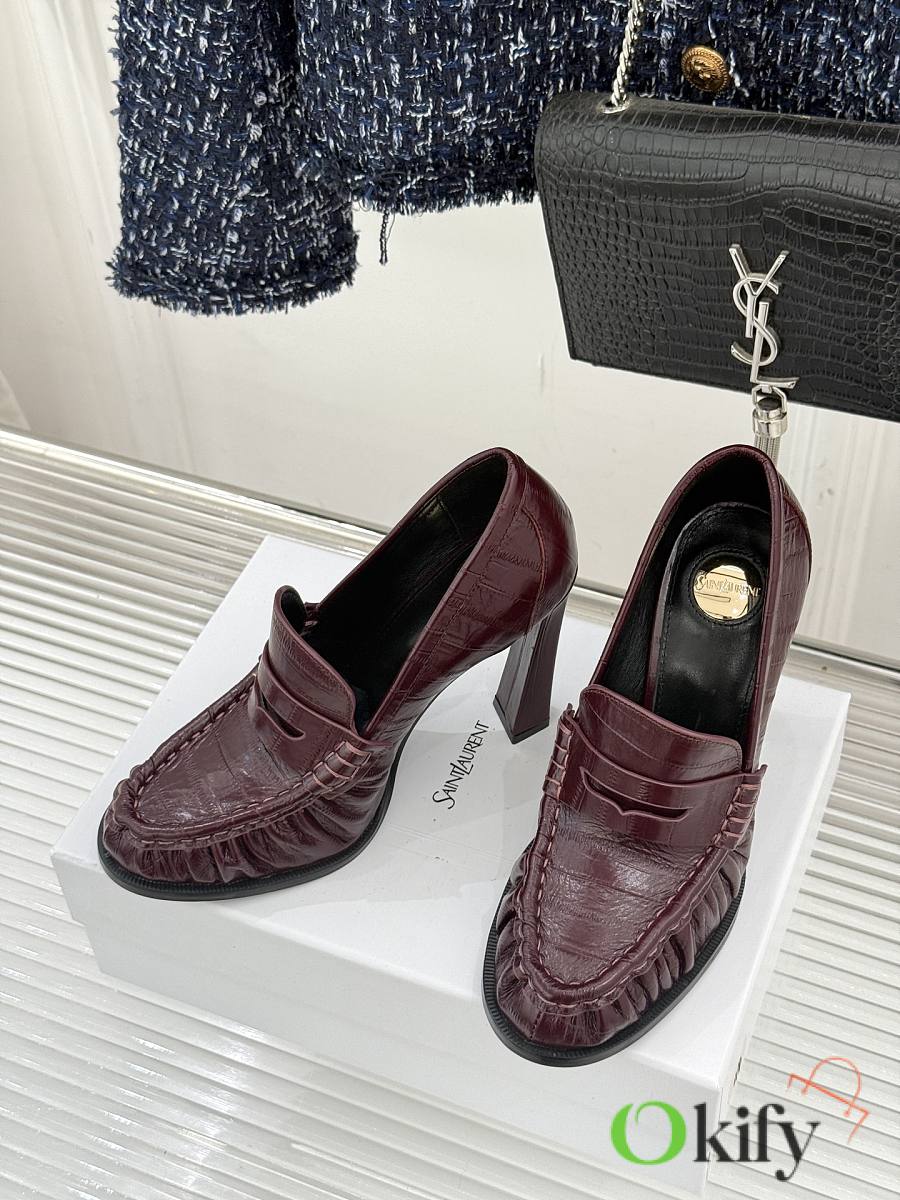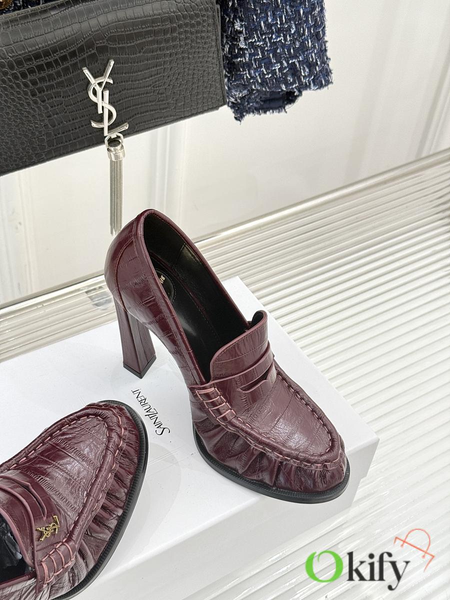 Okify YSL Dark Red Horizontal Leather High Heels 10.5cm