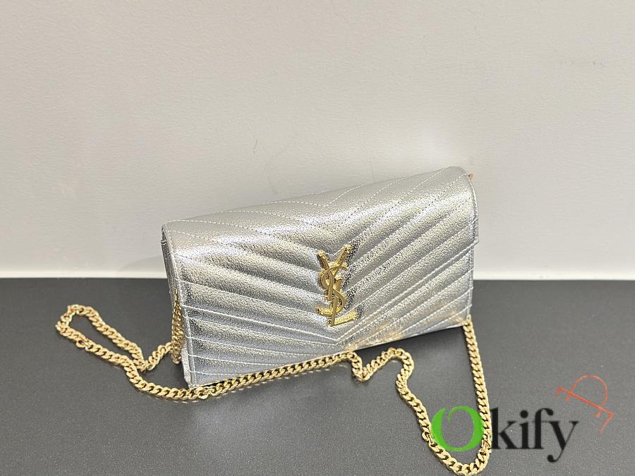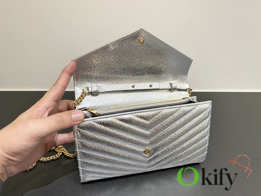 Okify YSL Envelope Wallet On Chain Bag In Silver 22x14x4cm