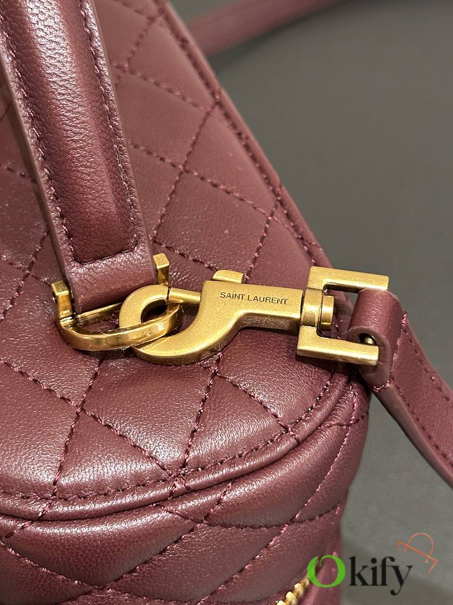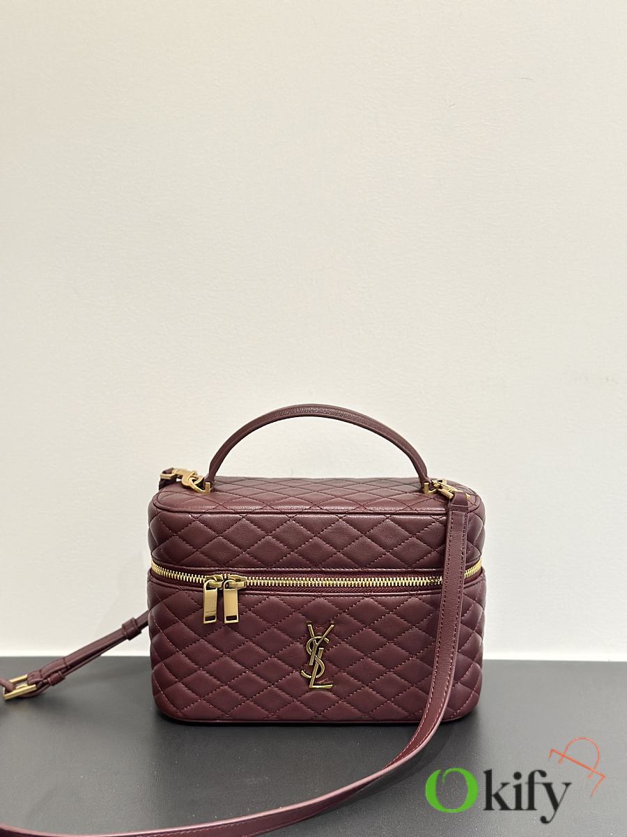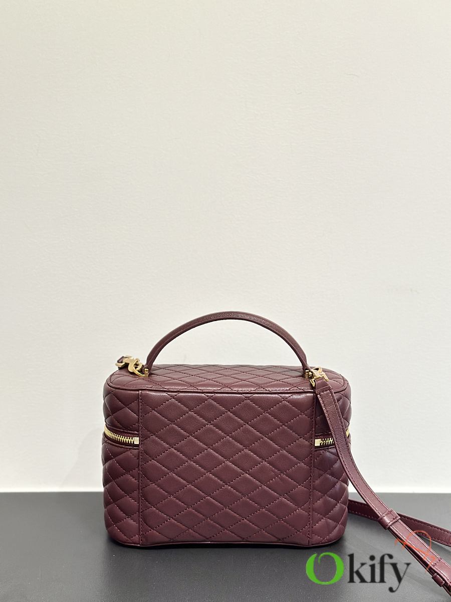 This cosmetic box bag is made of lambskin with diamond-quilted stitching, a wraparound zipper, a leather top handle, and an adjustable and detachable shoulder strap. Hand-carry, shoulder-carry, or crossbody! Exquisite and practical, it goes well with any season! Who doesn't own a stylish box bag yet!