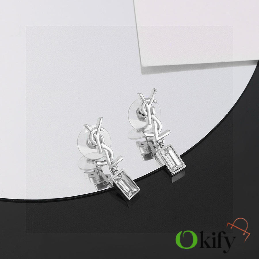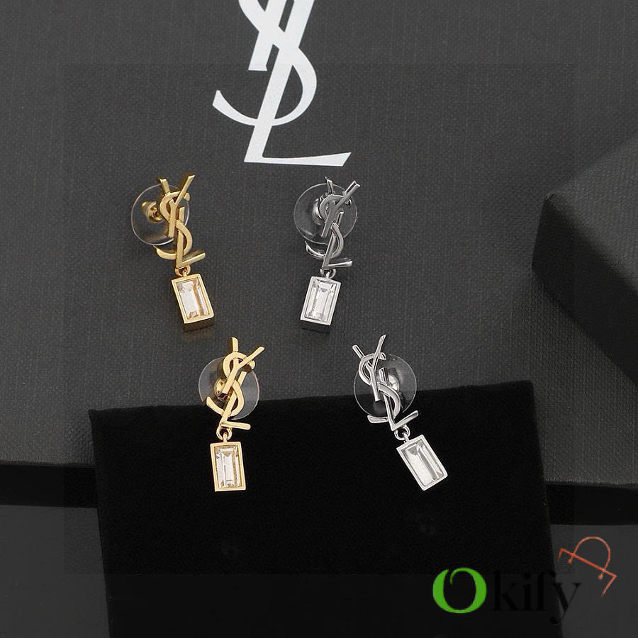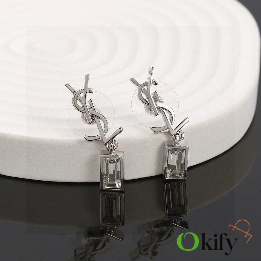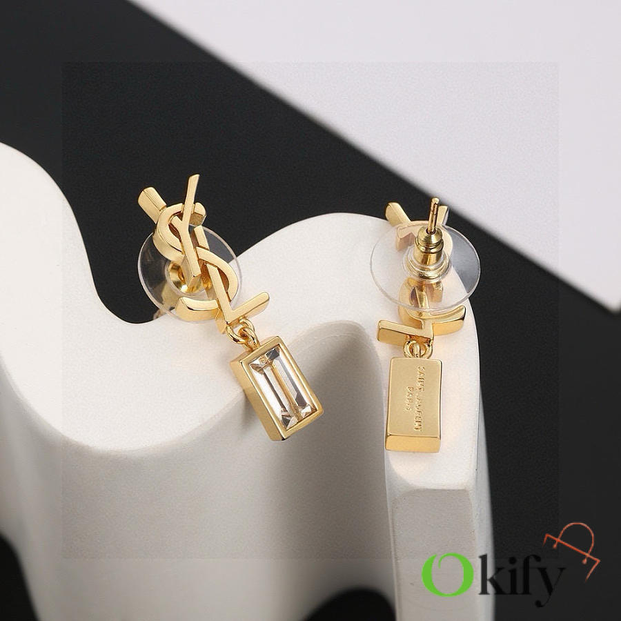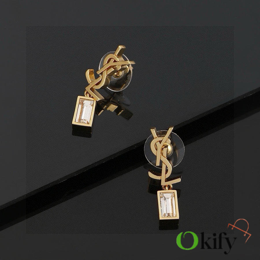 Okify YSL Gold/Silver Drop Earrings With Rectangular Crystal