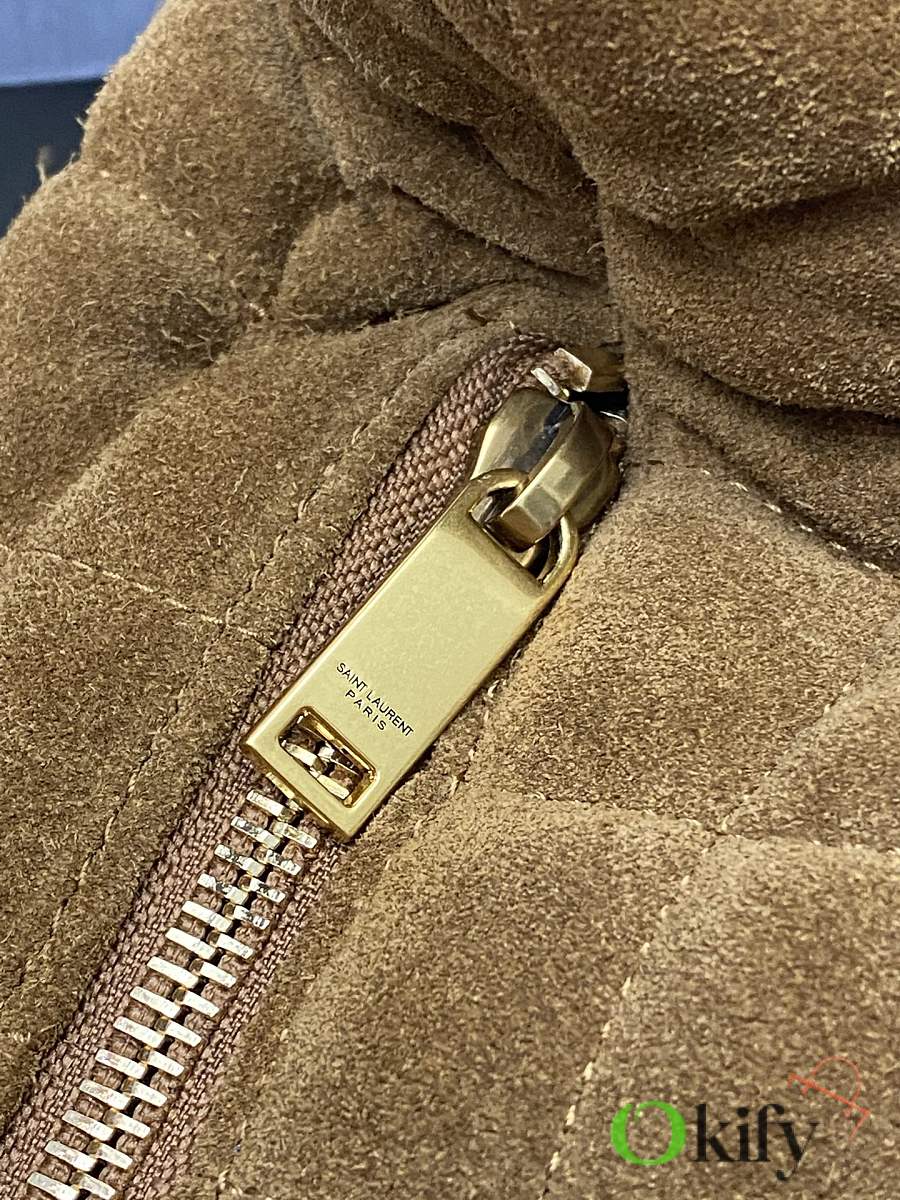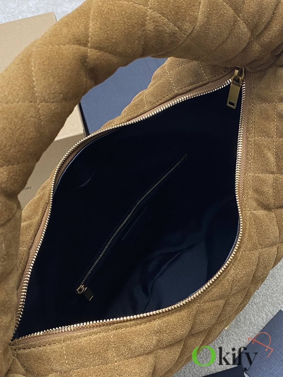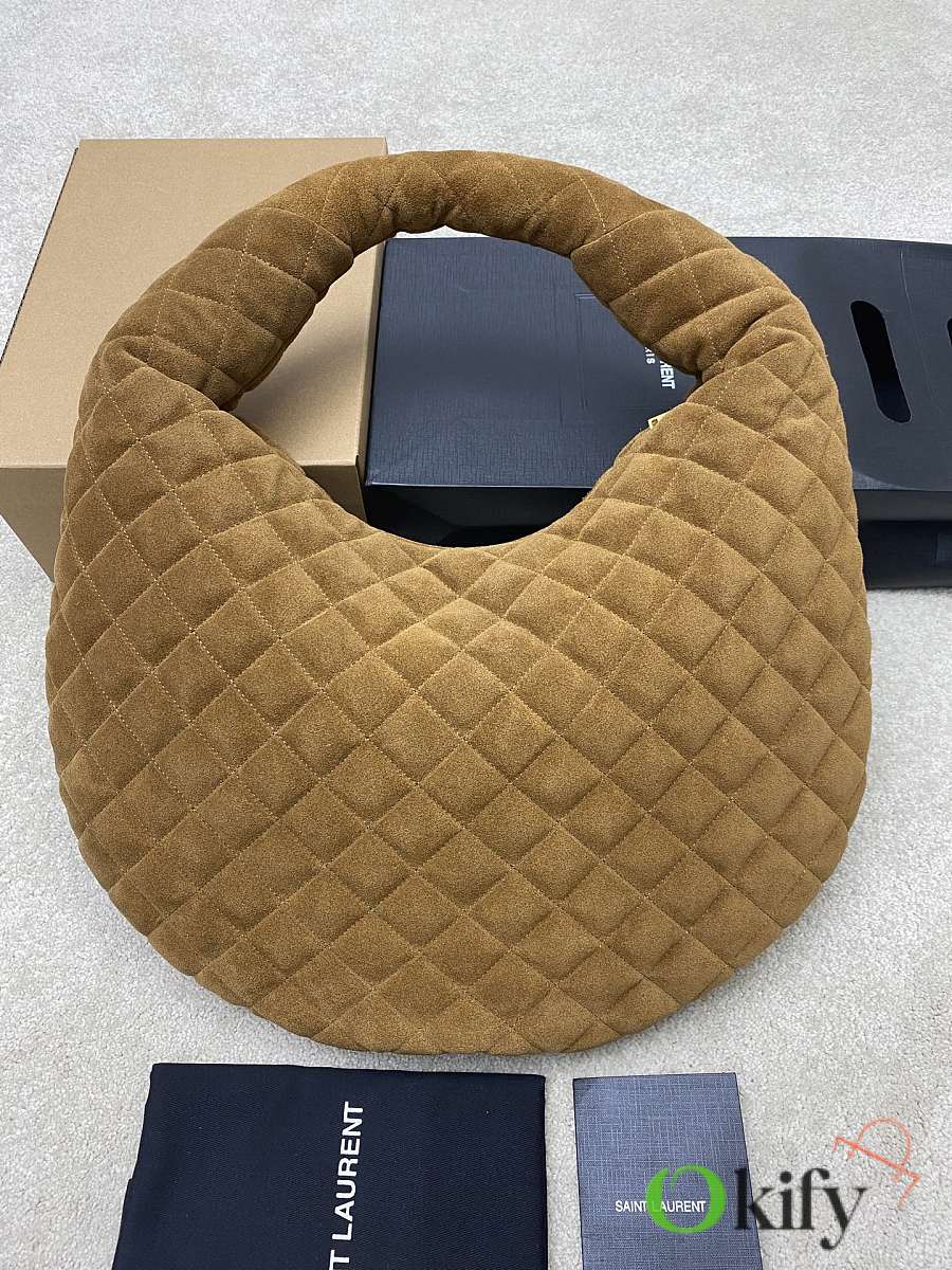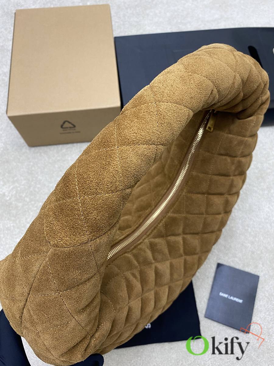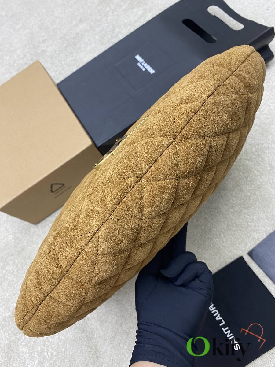 The new ICARE baby suede bag in matte brown/gold has arrived. The highly anticipated croissant-shaped bag, adorned with the iconic metal logo, perfectly blends retro and modern styling, making it one of this season's most anticipated It Bags. Whether it's a casual outing or a night out, this bag is the perfect choice! Model: 858160 Dimensions: 47x35x15cm