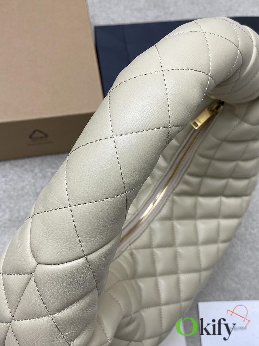 The new ICARE baby Nappa lambskin handbag in apricot/gold has arrived. The highly anticipated croissant-shaped bag, adorned with the iconic metal logo, perfectly blends vintage and modern sensibilities, making it one of this season's most anticipated It Bags. Whether it's a casual outing or a night out, this bag is the perfect choice! Model: 858160 Dimensions: 47x35x15cm