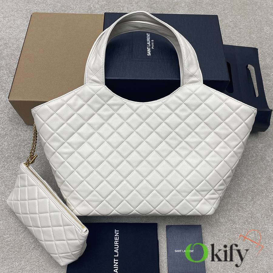 Okify YSL Icare Shopping Bag In White Lambskin 31/46x28x15.5cm