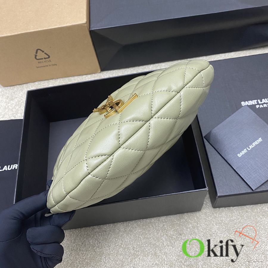 he highly anticipated croissant-shaped bag in moss green lambskin/gold ICARE baby nappa lambskin makes a dazzling debut. Embellished with the iconic metal logo, it perfectly blends retro and modern sensibilities, making it one of this season's most anticipated It Bags. Whether it's a daily outing or a night out, this bag is effortlessly stylish! Model: 851689 Size: 17cm×18cm×4cm