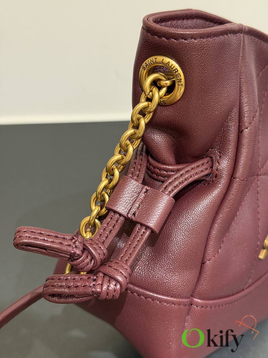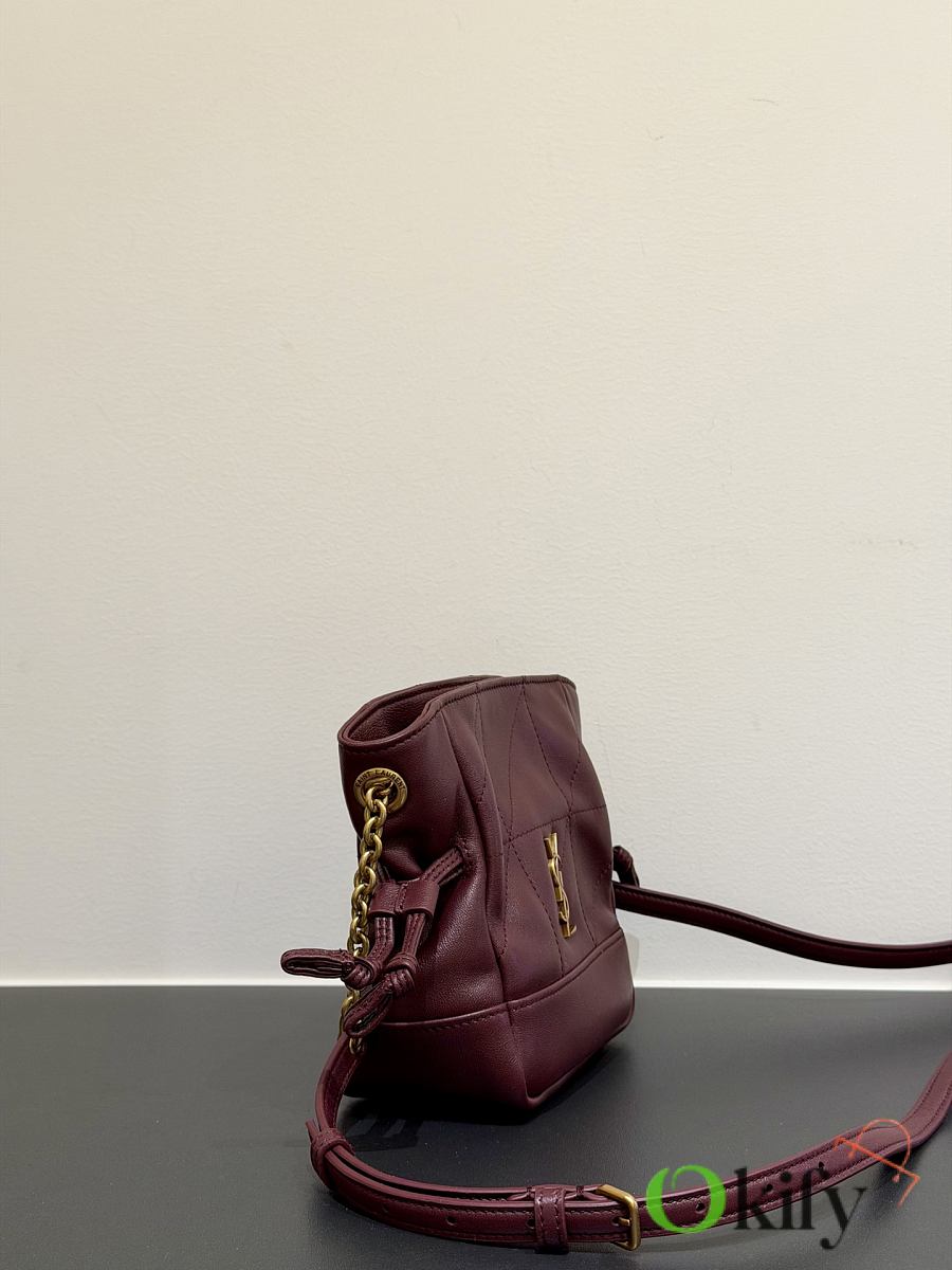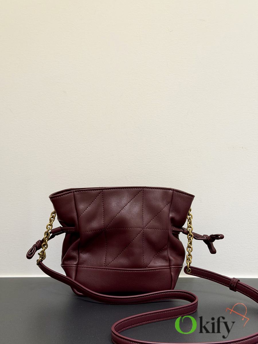 This tote combines both style and practicality. This lightweight and compact handbag features a chain shoulder strap for crossbody wear. The drawstring closure allows you to tighten or loosen the sides, creating different silhouettes. It's a stylish and sophisticated piece, exuding elegance and luxury! Dimensions: 14.5*15.5*8cm Model Number: 859174
