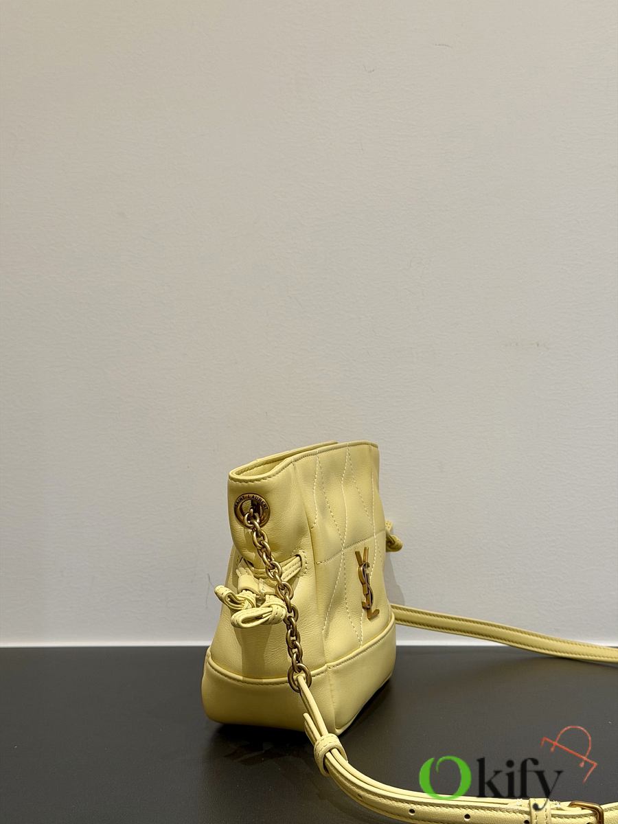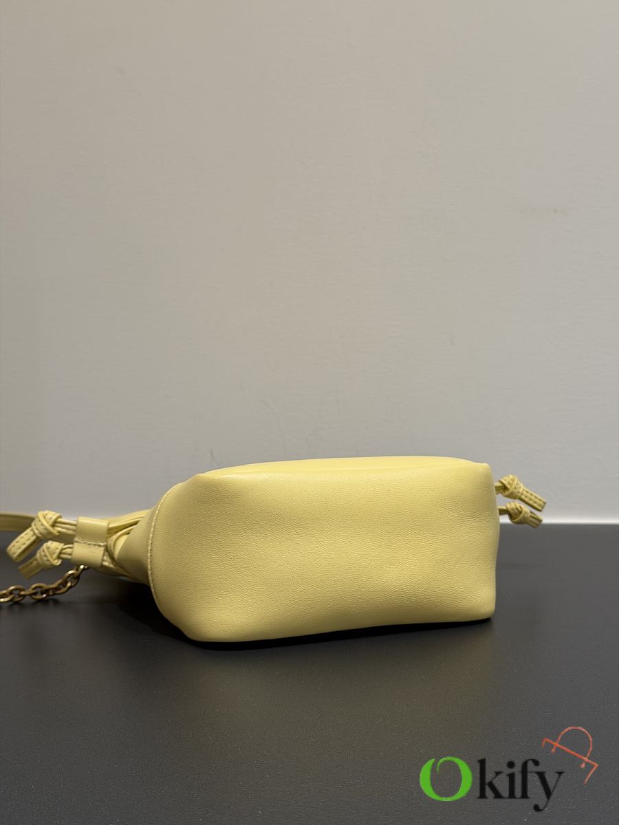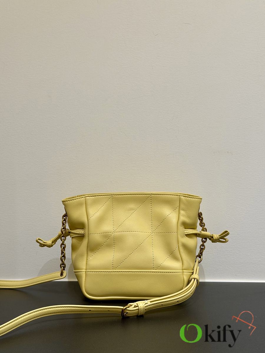 This tote combines both style and practicality. This lightweight and compact handbag features a chain shoulder strap for crossbody wear. The drawstring closure allows you to tighten or loosen the sides, creating different silhouettes. It's a stylish and sophisticated piece, exuding elegance and luxury! Dimensions: 14.5*15.5*8cm Model Number: 859174