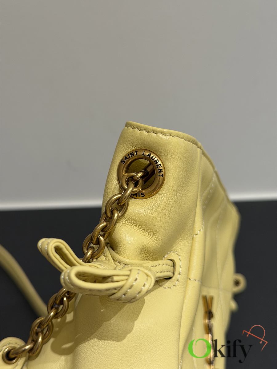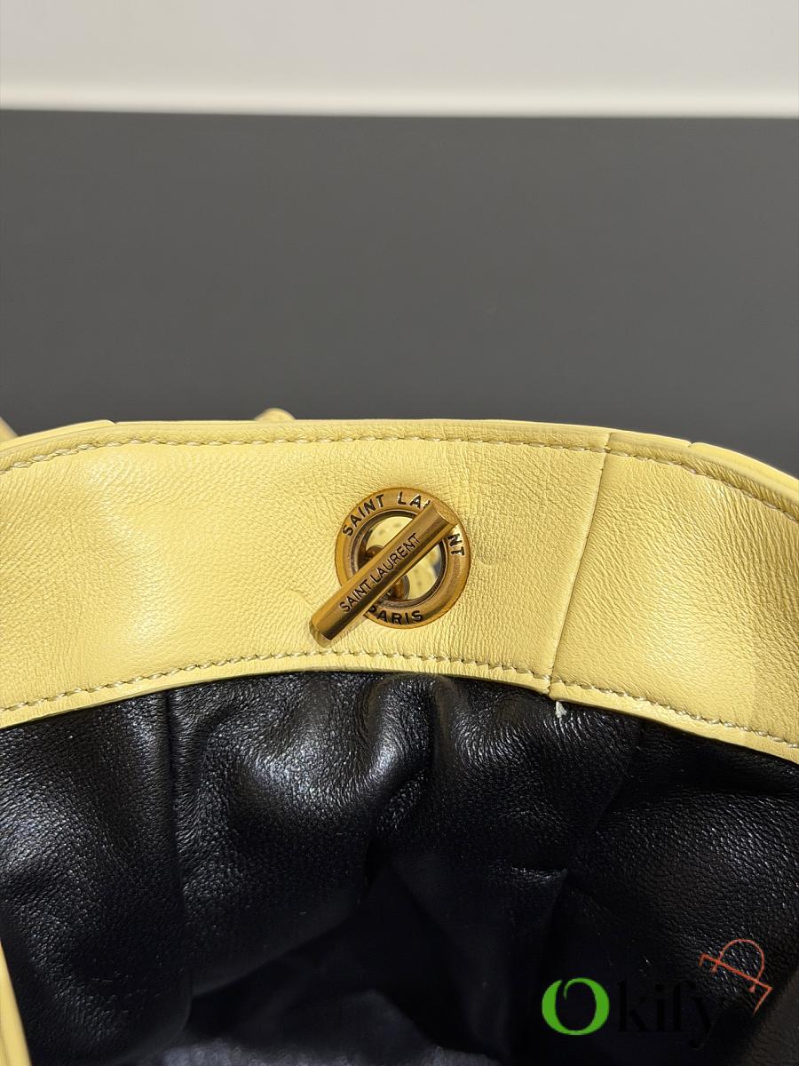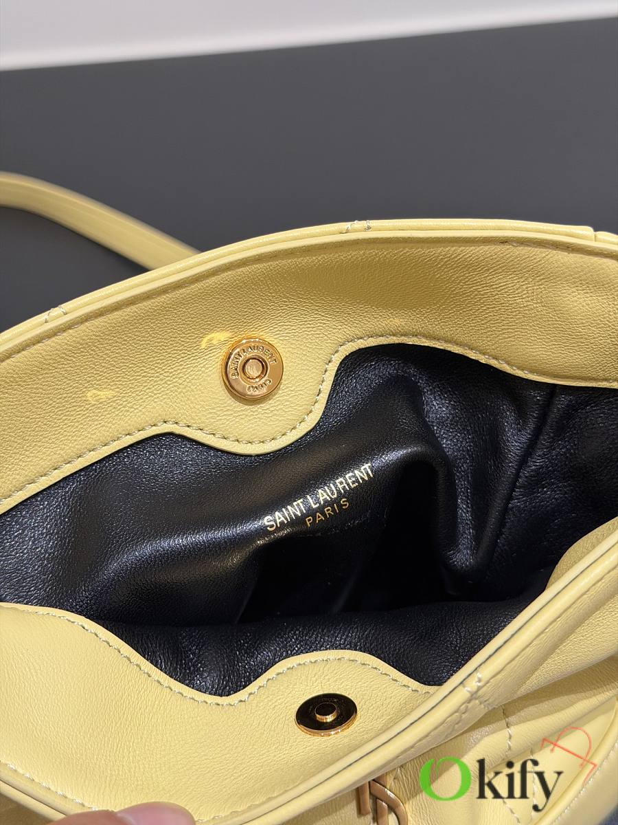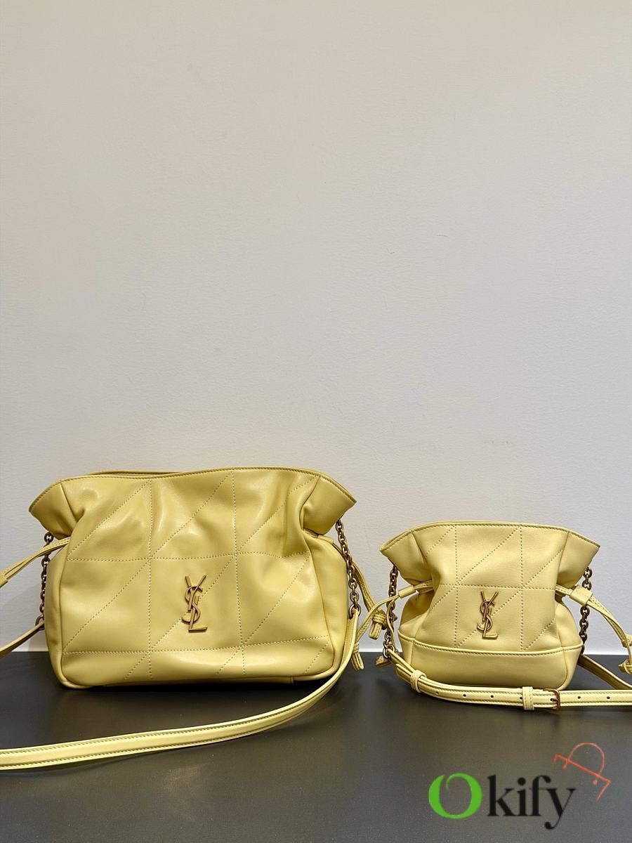 This tote combines both style and practicality. This lightweight and compact handbag features a chain shoulder strap for crossbody wear. The drawstring closure allows you to tighten or loosen the sides, creating different silhouettes. It's a stylish and sophisticated piece, exuding elegance and luxury! Dimensions: 14.5*15.5*8cm Model Number: 859174