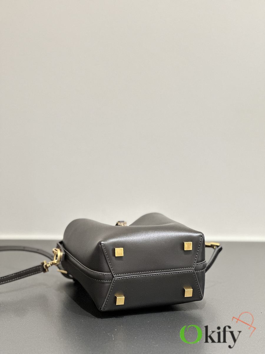 The bucket bag that became an instant hit in the fashion world upon its release! The bag is made of smooth calfskin with a simple and three-dimensional silhouette. It looks sturdy but not too sharp. The bottom has four metal feet, and it is paired with a classic and iconic metal logo insert clasp. Overall, it gives people a unique temperament that is both classic and elegant, as well as fashionable and modern!