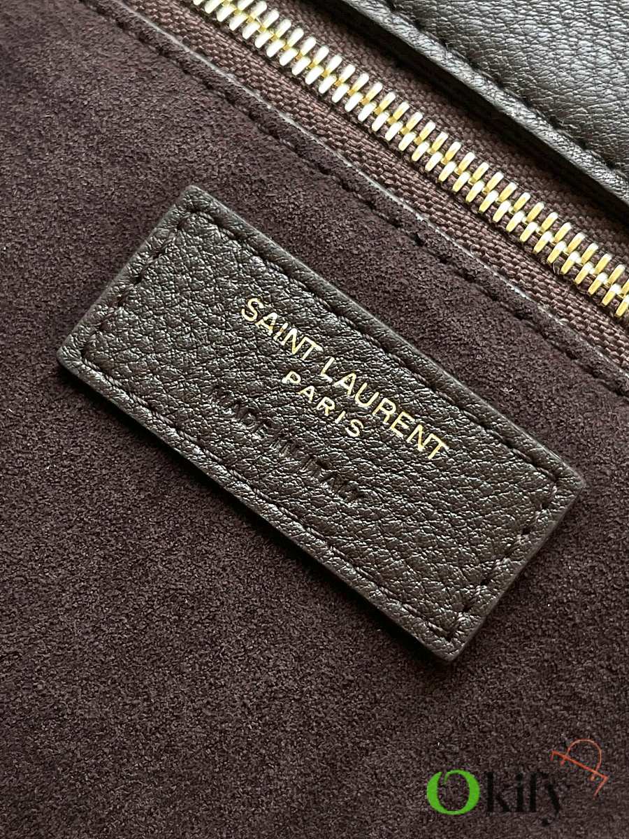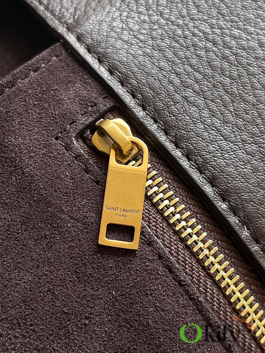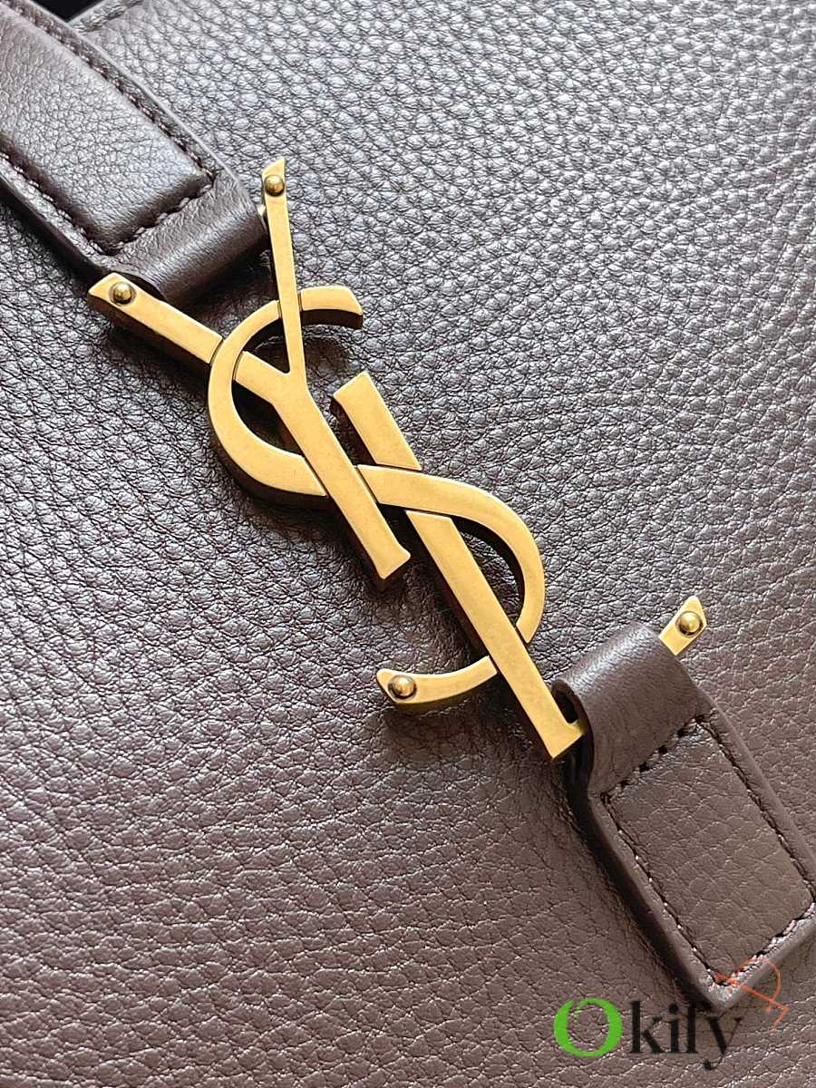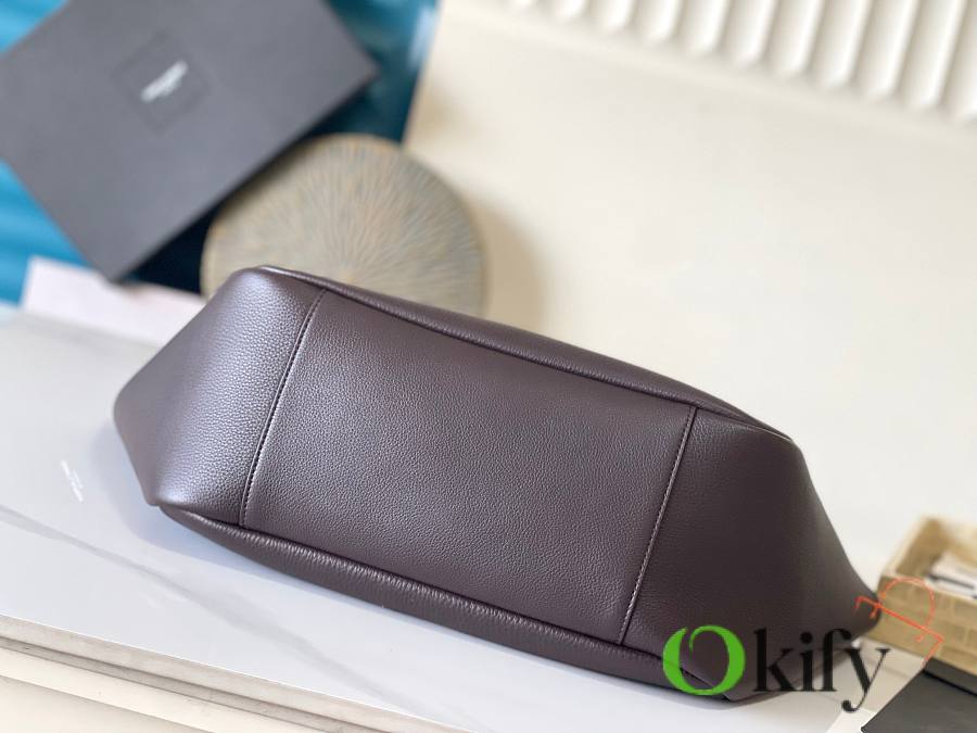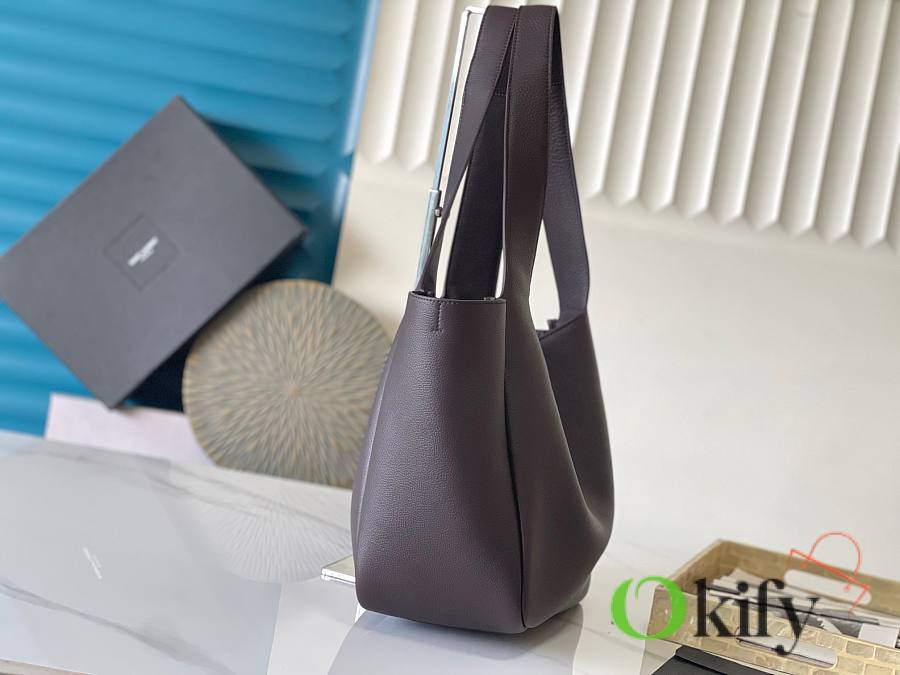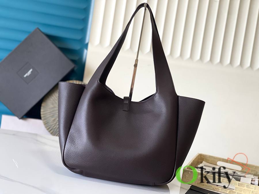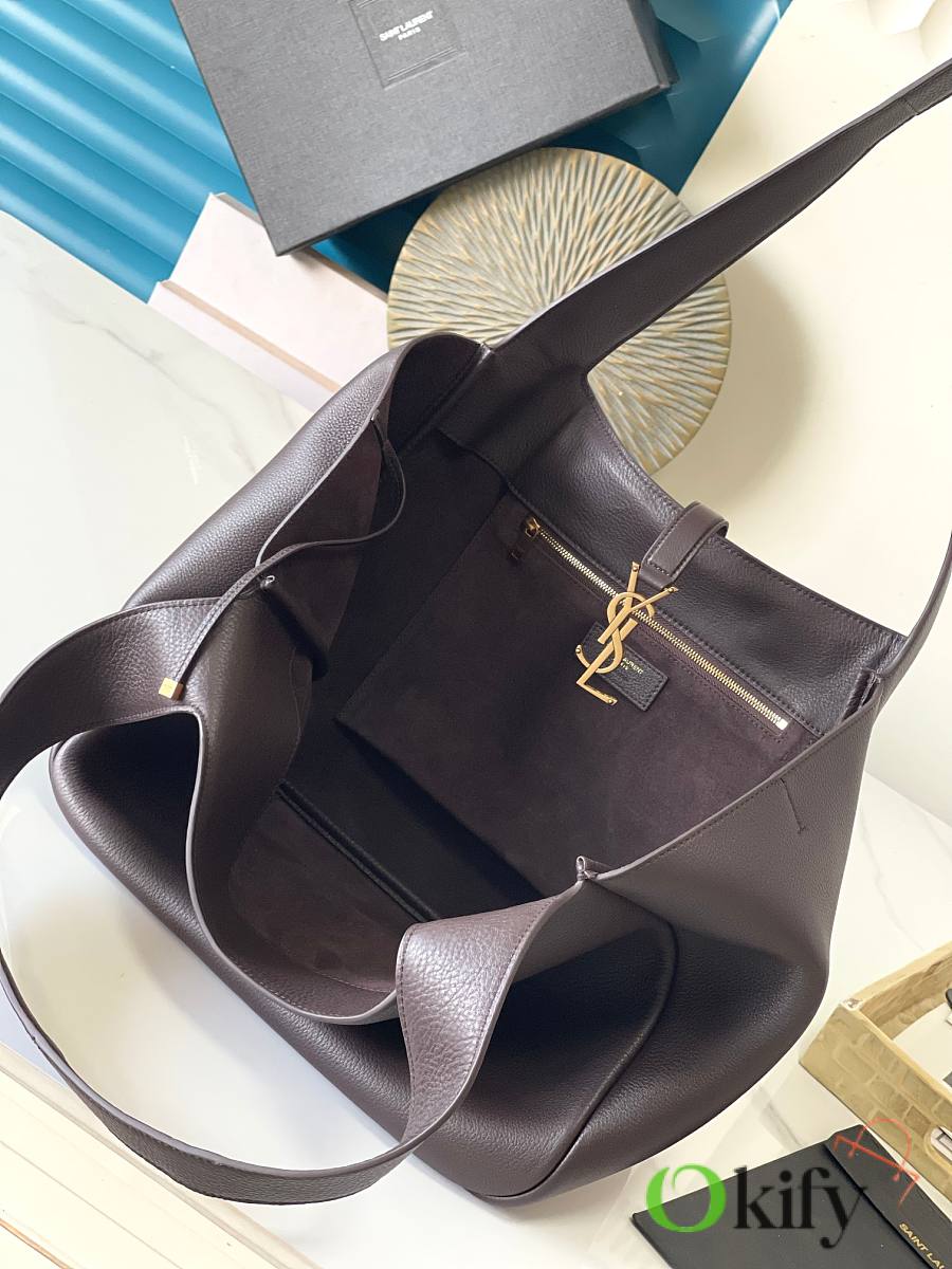 À tote bag is available in a horizontal style, featuring a leather buckle closure and adorned with LE CASSANDRE. It offers ample space, features a matching suede lining, a main compartment and an interior zip pocket, an internal drawstring design, and foldable or unfoldable sides as needed. Perfect for daily commutes!