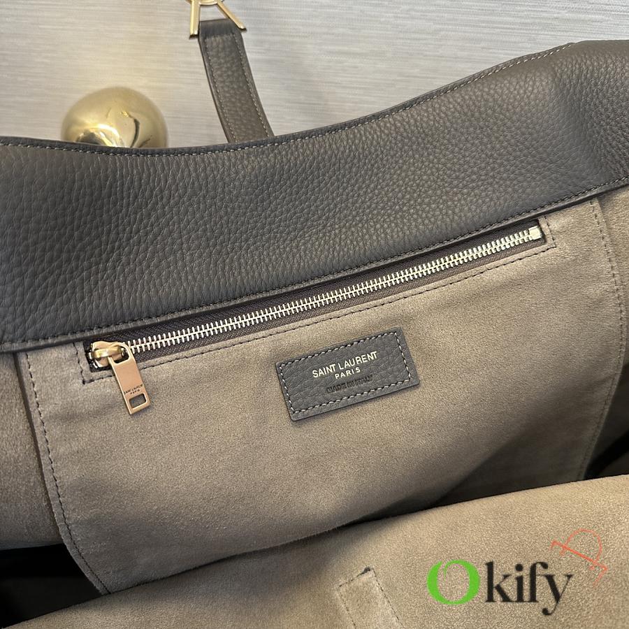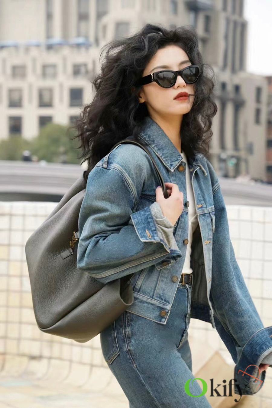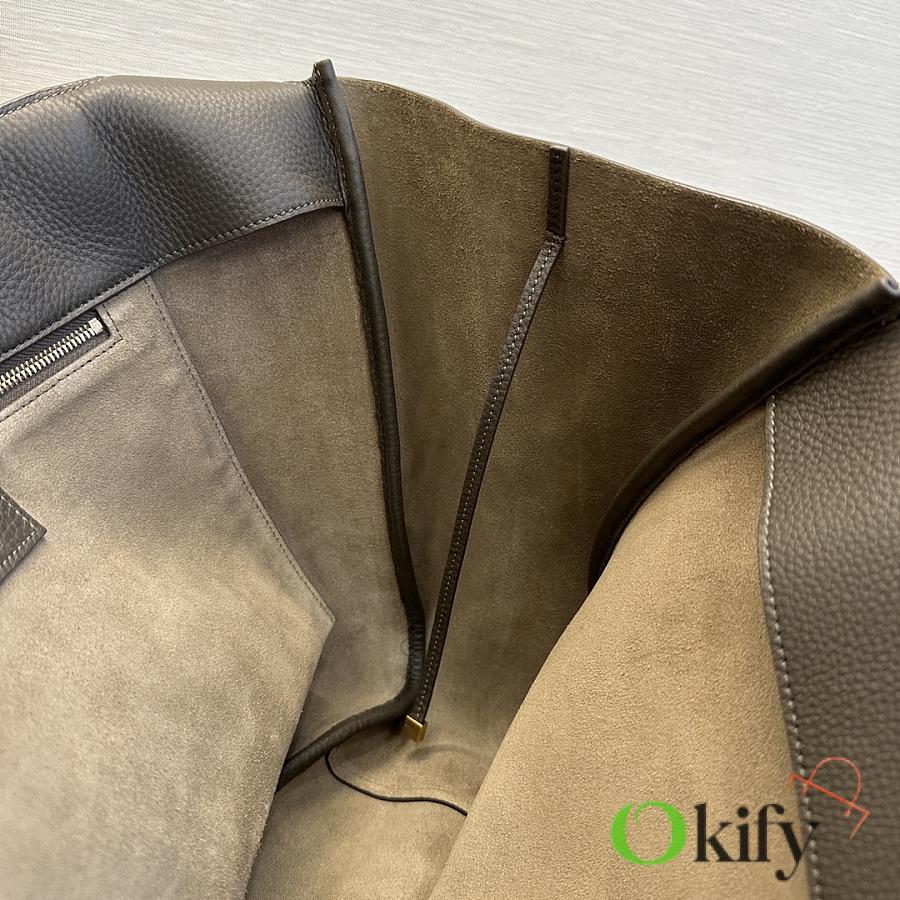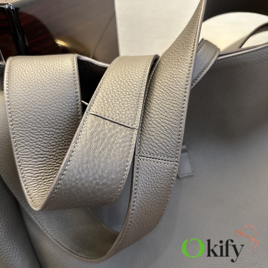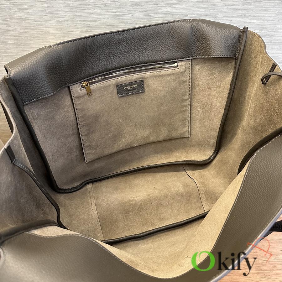 The À tote bag is available in a horizontal style, featuring a leather buckle closure and adorned with LE CASSANDRE. It offers ample space, features a matching suede lining, a main compartment and an interior zip pocket, an internal drawstring design, and foldable or unfoldable sides as needed. Perfect for daily commutes!