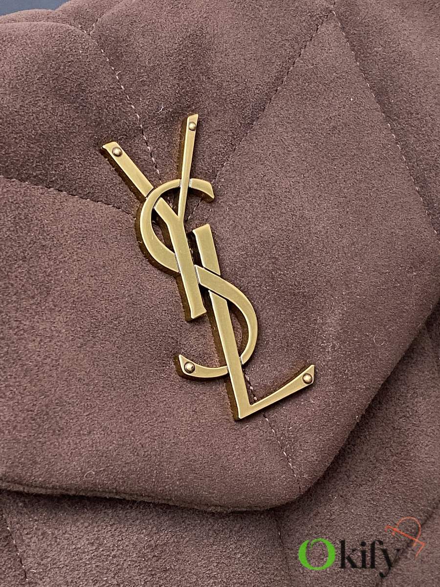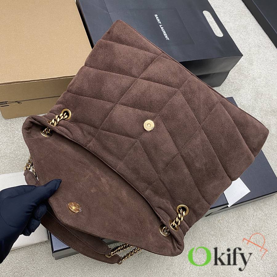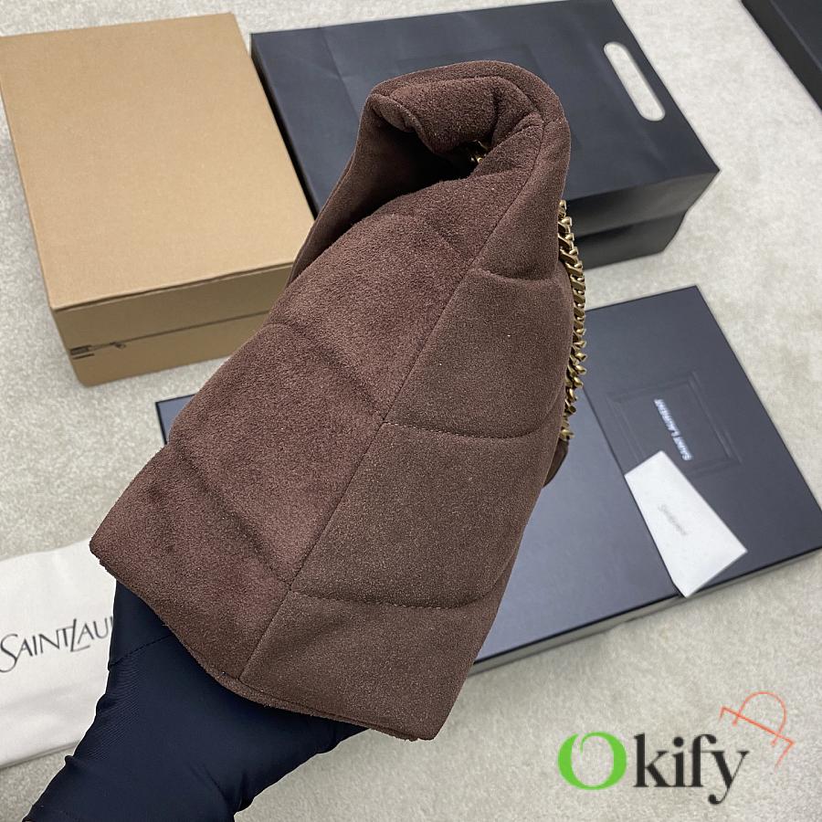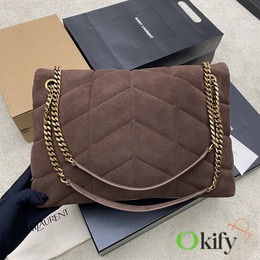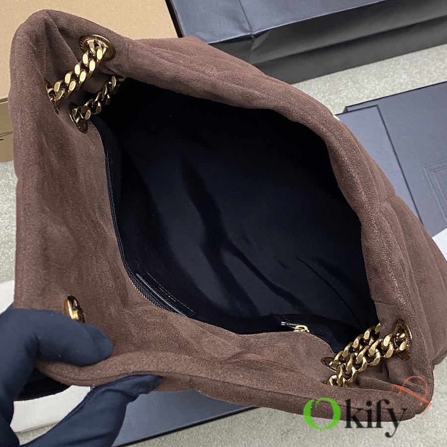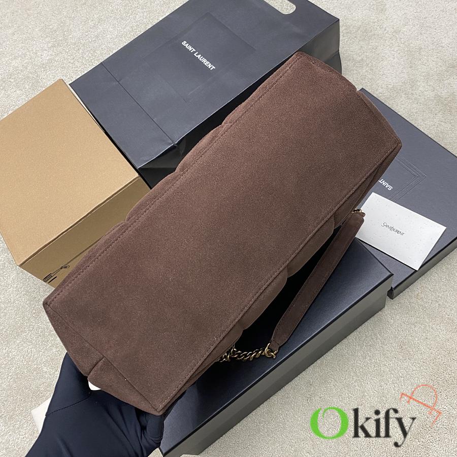 Large quilted suede nubuck leather, made from genuine leather, soft and delicate to the touch, like holding a cloud. The classic Y brand logo, chain, and buckle hardware are all made of matte gold silver hardware. The bag opening uses a magnetic snap closure after folding, providing excellent sealing and security