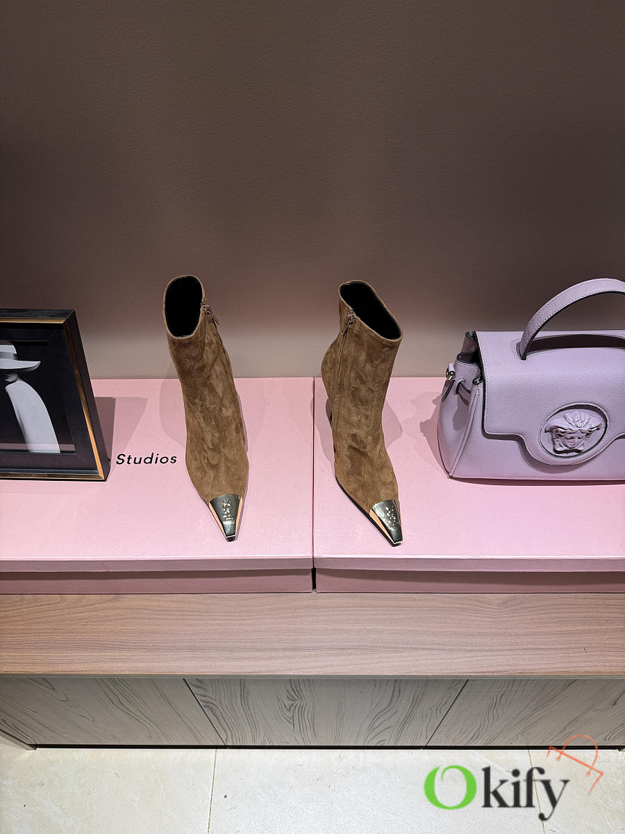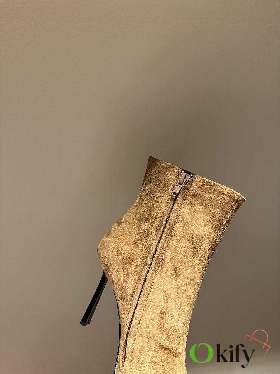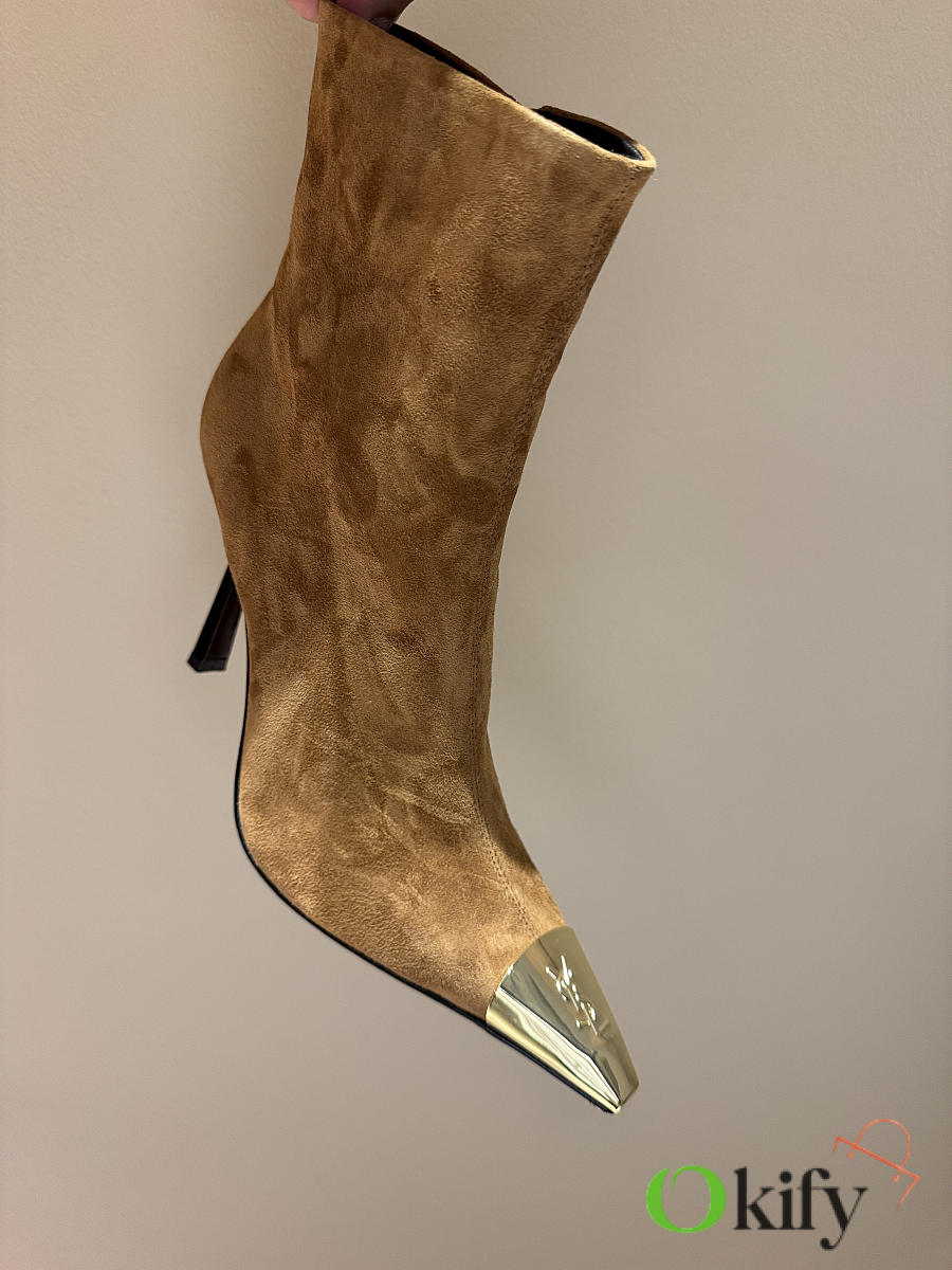 Okify YSL Metal Toe Trim Ankle Boots Brown 10.5cm