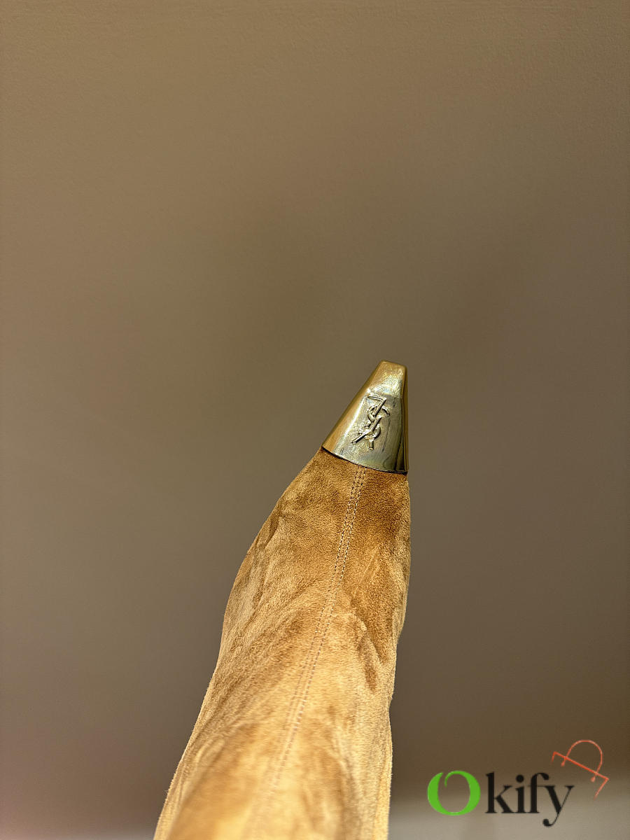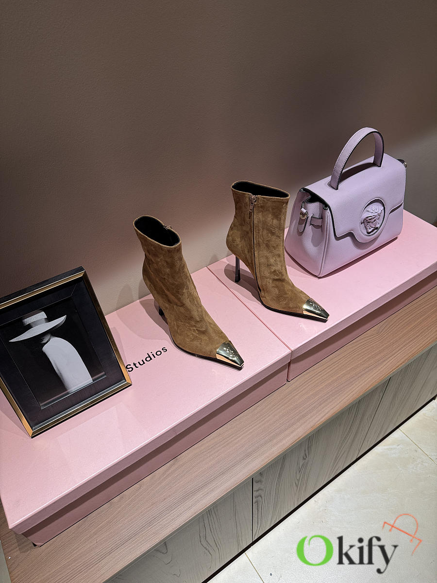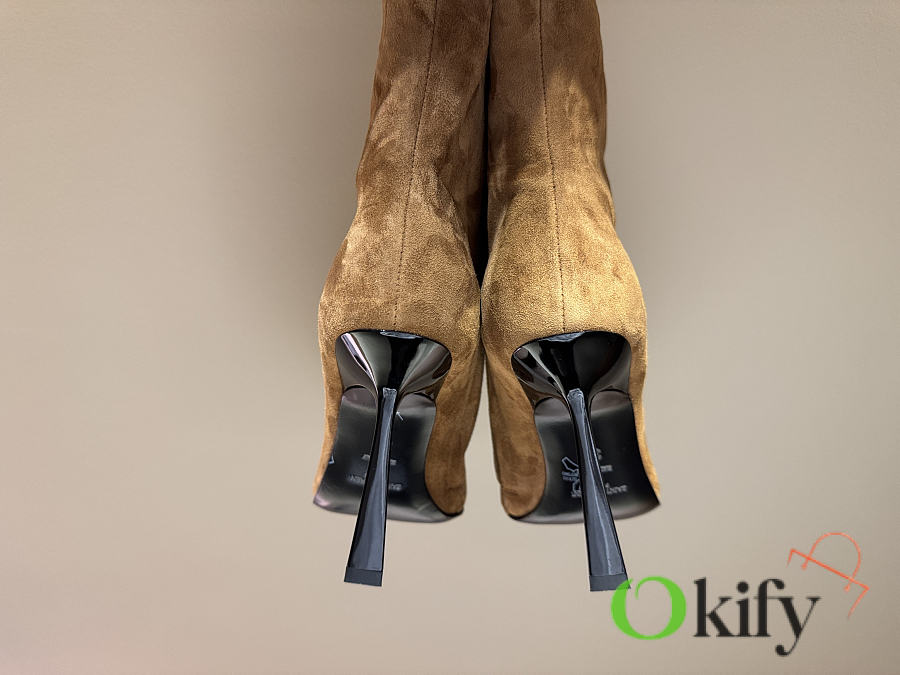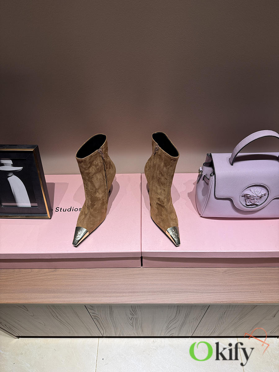 Okify YSL Metal Toe Trim Ankle Boots Brown 10.5cm