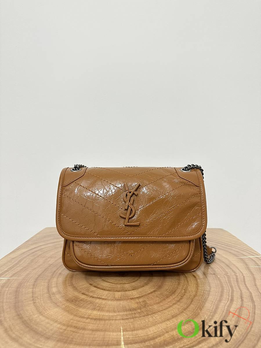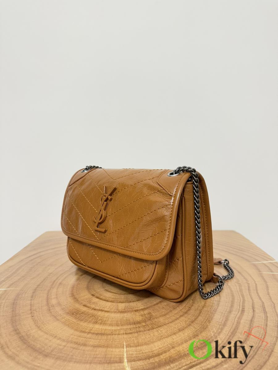 Okify YSL Niki Baby Bag In Brown Caramel Vintage Leather 22x16.5x12cm