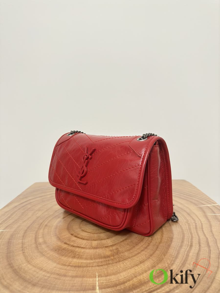 Okify YSL Niki Baby Bag In Red Vintage Leather 22x16.5x12cm