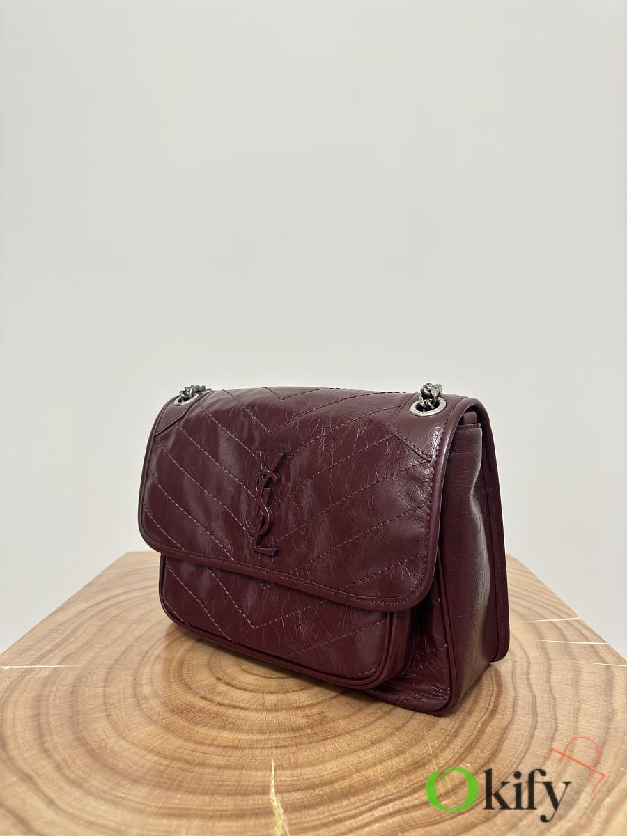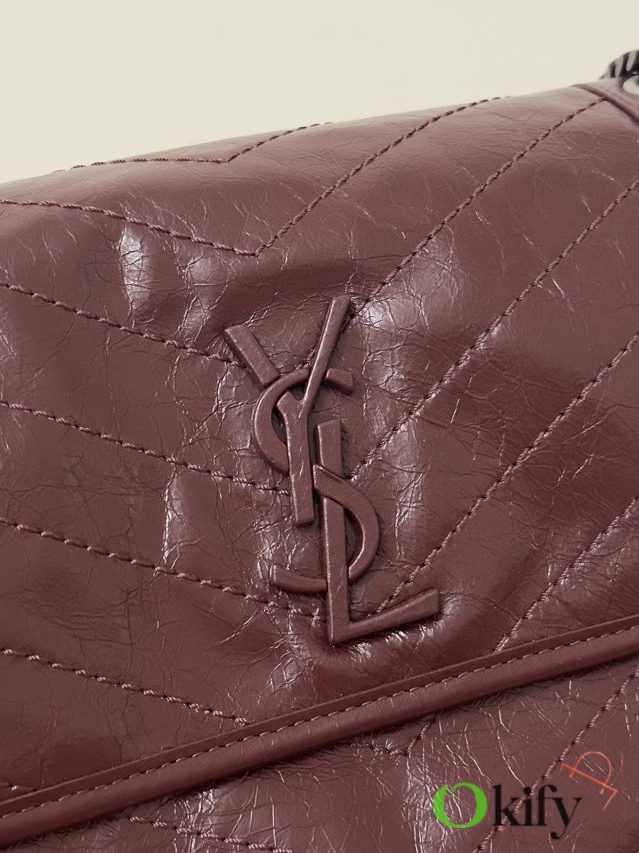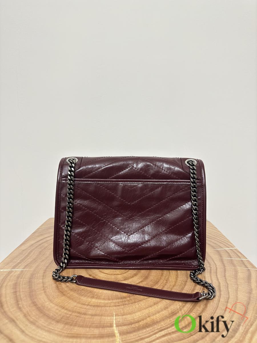 Okify YSL Niki Bag In Red Burgundy Vintage Leather 28x20.5x8.5cm