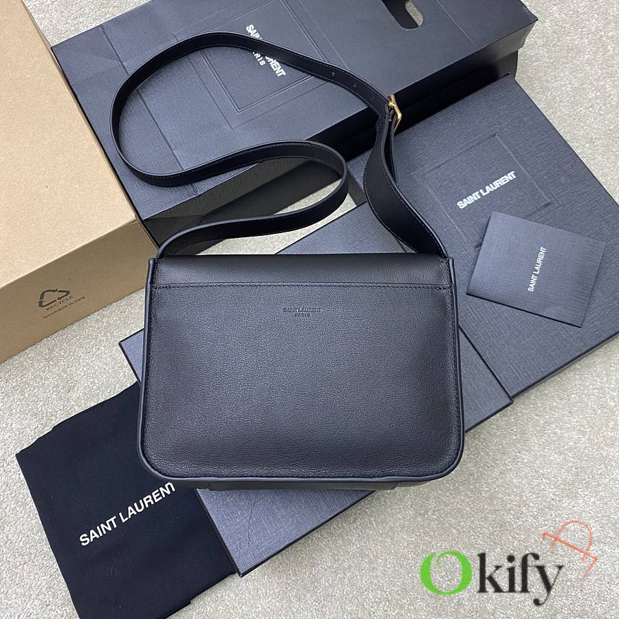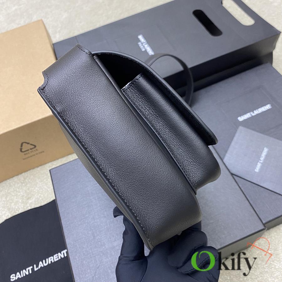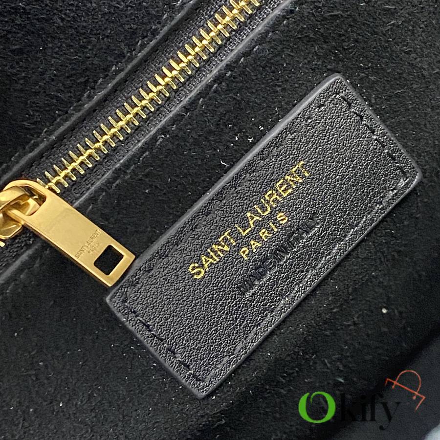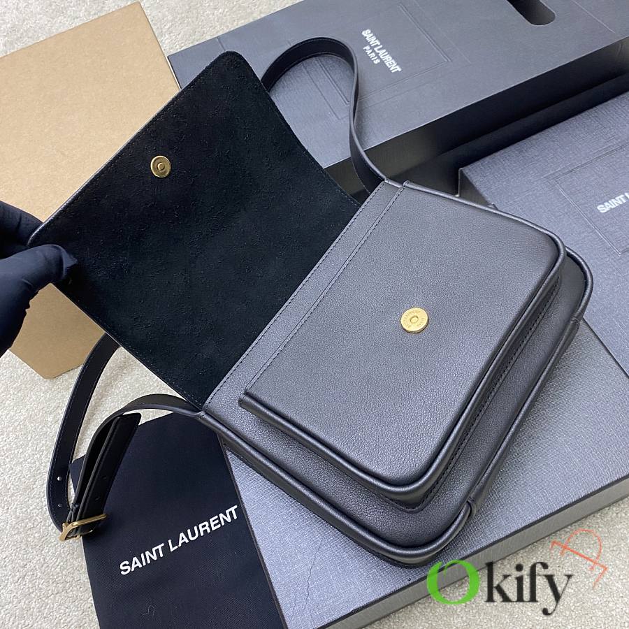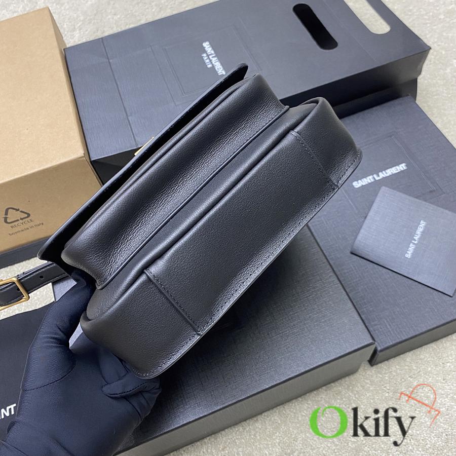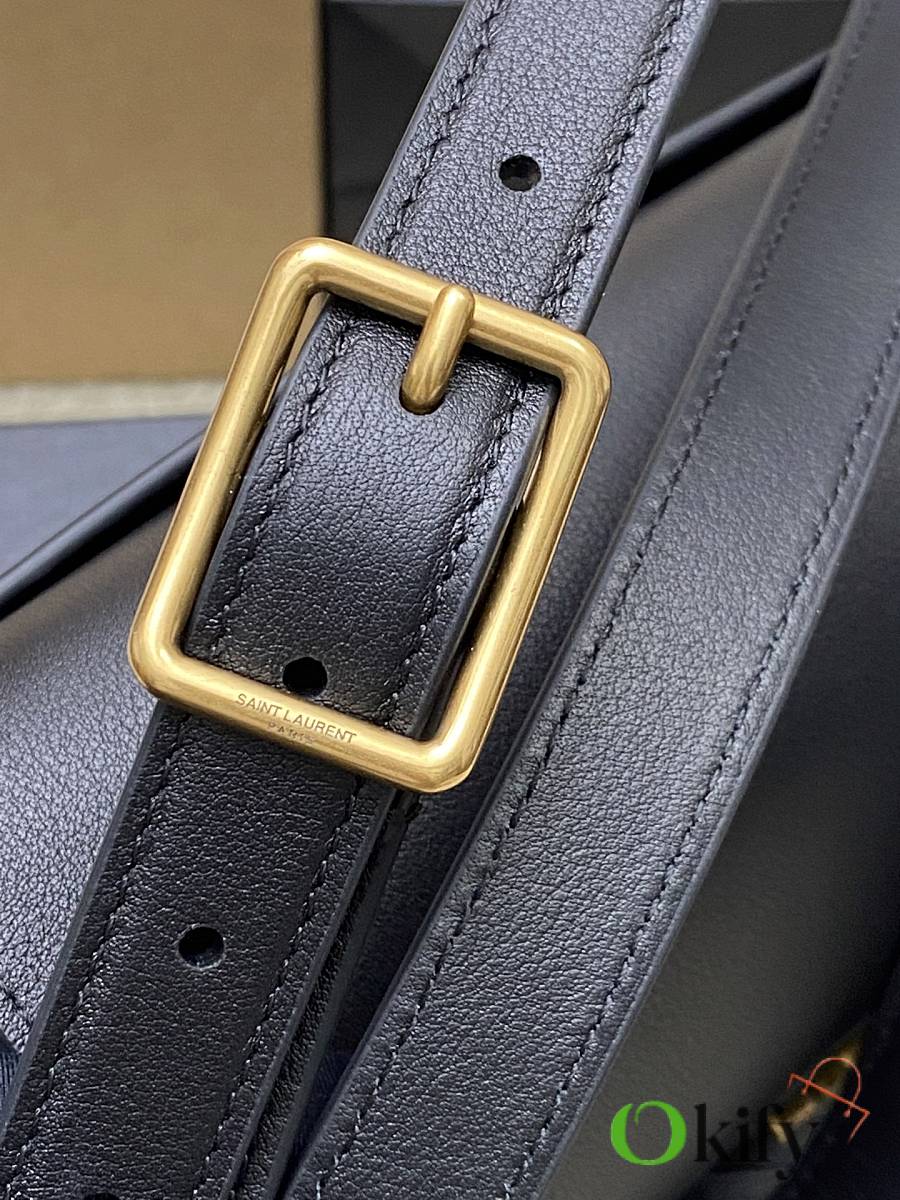 The new Saint Laurent Niki handbag comes in a unique new Besace saddle shape, crafted from caramel brown vegetable-tanned calfskin, featuring a soft heart-shaped flap closure and a YSL gold logo clasp. The bag offers two compartments and an adjustable shoulder strap, perfect for bohemian outfits or the Maillard look ideal for fall and winter, exuding a retro yet chic vibe
