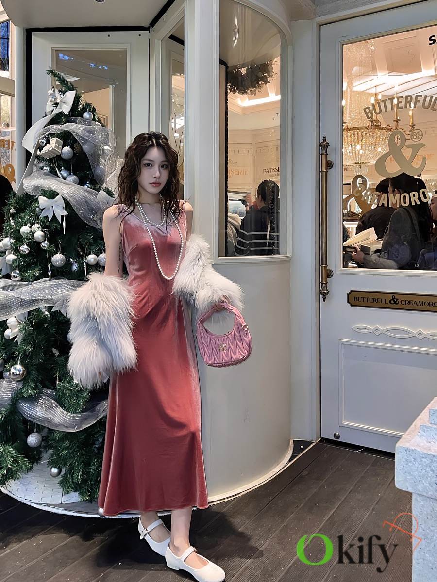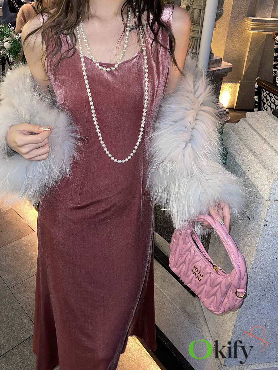 Original custom-made imported high-stretch silk blend material with a lustrous and drapey texture. A must-have for every luxury brand. The slip dress is super easy to wear and very slimming, better than spaghetti straps, and can cover side breasts. The U-neck is just the right size and will not show any exposure. It is stress-free to wear alone and looks like Kendall Jenner. It is absolutely perfect to wear with an inner layer. The calf-length length is also the slimmingest length. It is very flattering and slimming but not tight or fat-enhancing. It is very comfortable and shows a great waist-to-hip ratio. The A-line skirt design cleverly balances the fluidity and stability of the skirt. It always lightly when walking, which is elegant and noble. Low-key luxury. The first choice for year-end parties with a suit and a small jacket. The perfect pink and black. very slimming, versatile, durable and suitable for everyone.