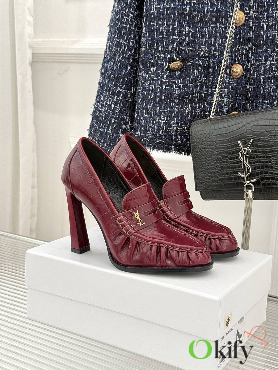 Okify YSL Red Horizontal Leather High Heels 10.5cm