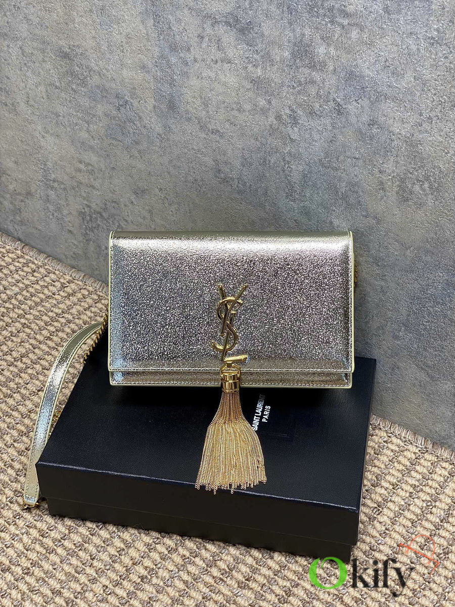 Okify YSL Kate Medium Bag Silver With Gold Tassel 19x12.5x3.5cm